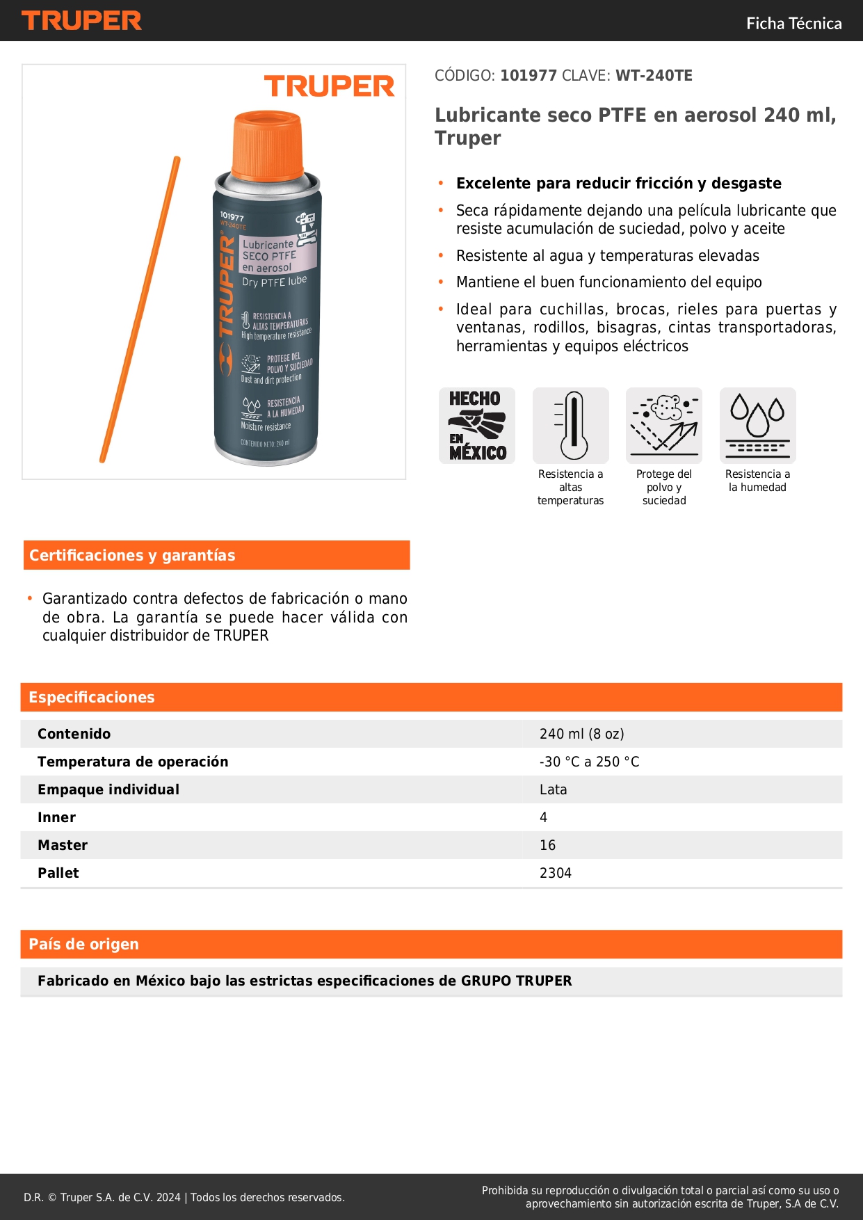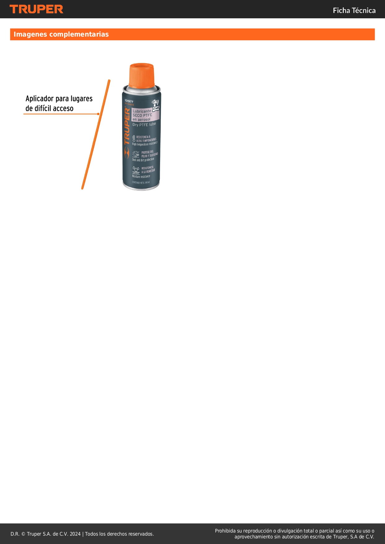 Lubricante seco PTFE en aerosol 240 ml, Truper