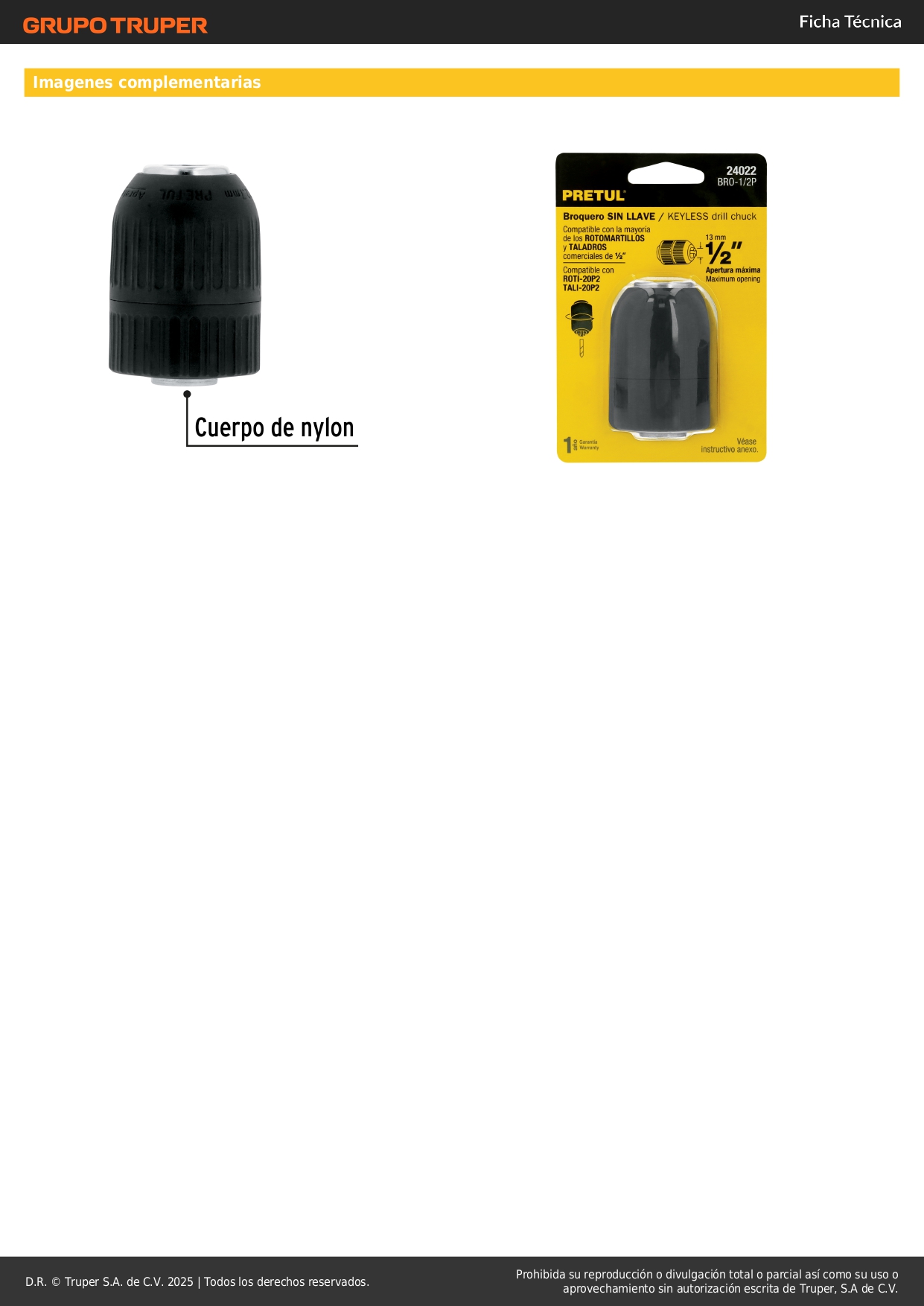 • Funciona para la mayoría de los taladros y rotomartillos comerciales de 1/2"