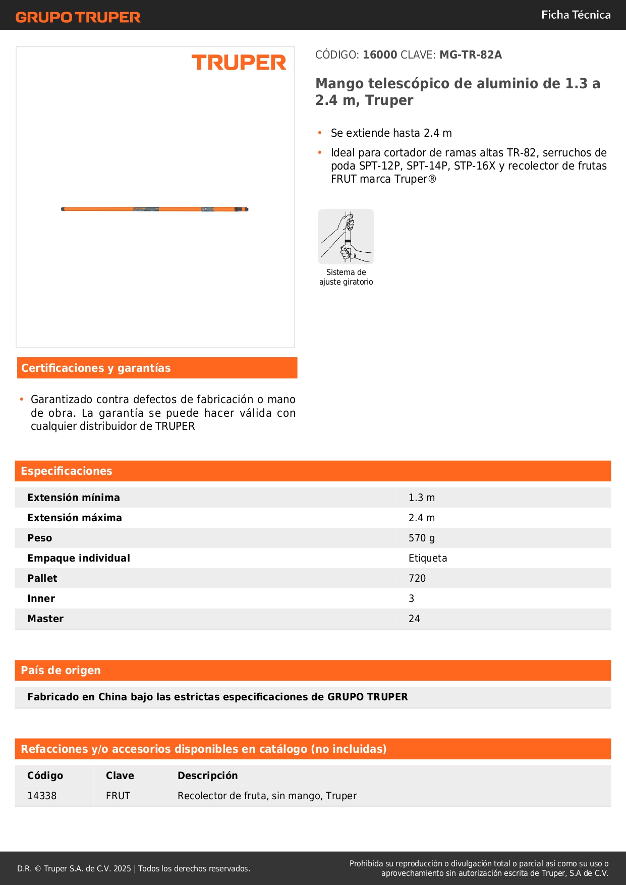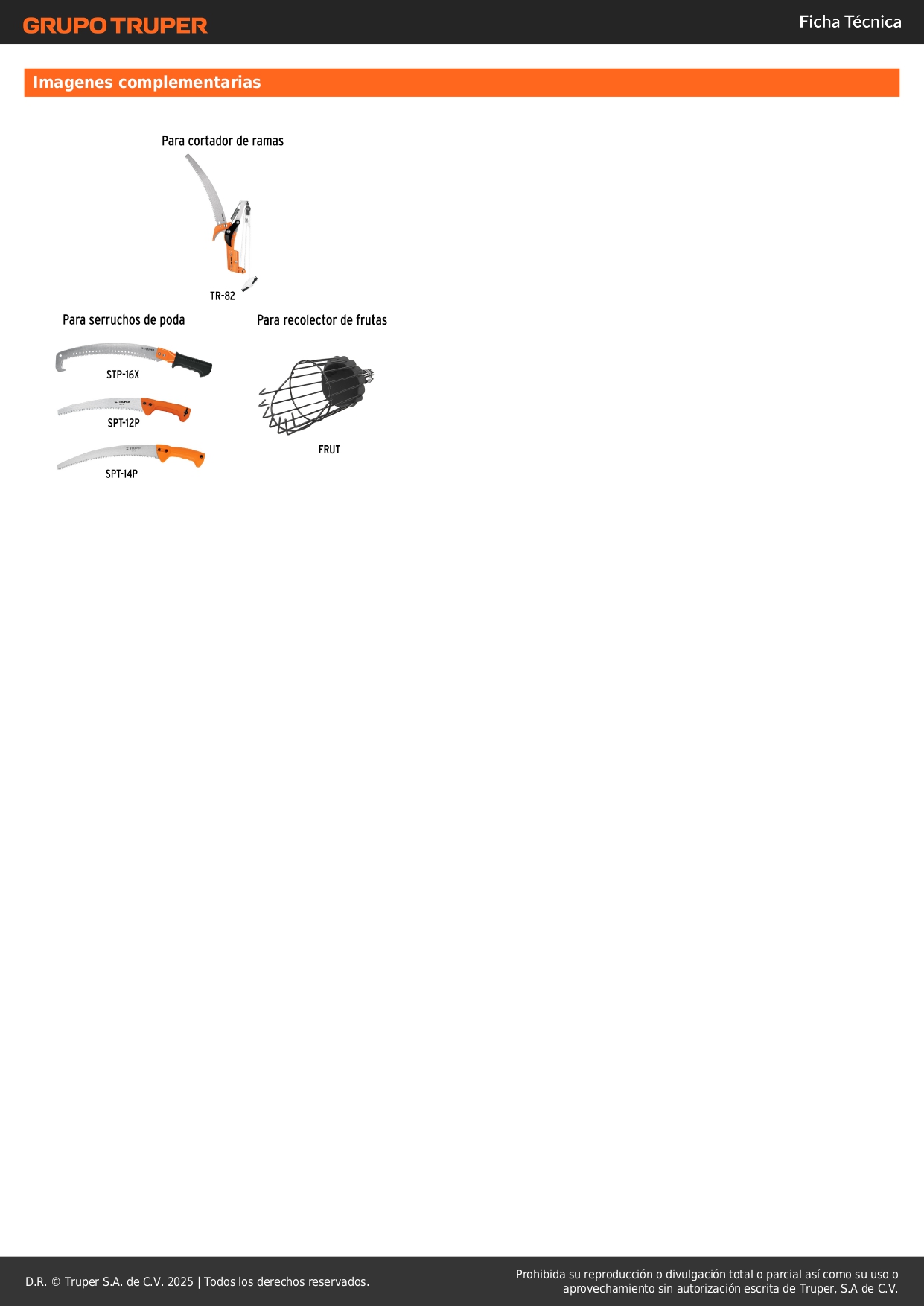 • Ideal para cortador de ramas altas TR-82, serrucho de poda con gancho STP-16X y recolector de frutas FRUT