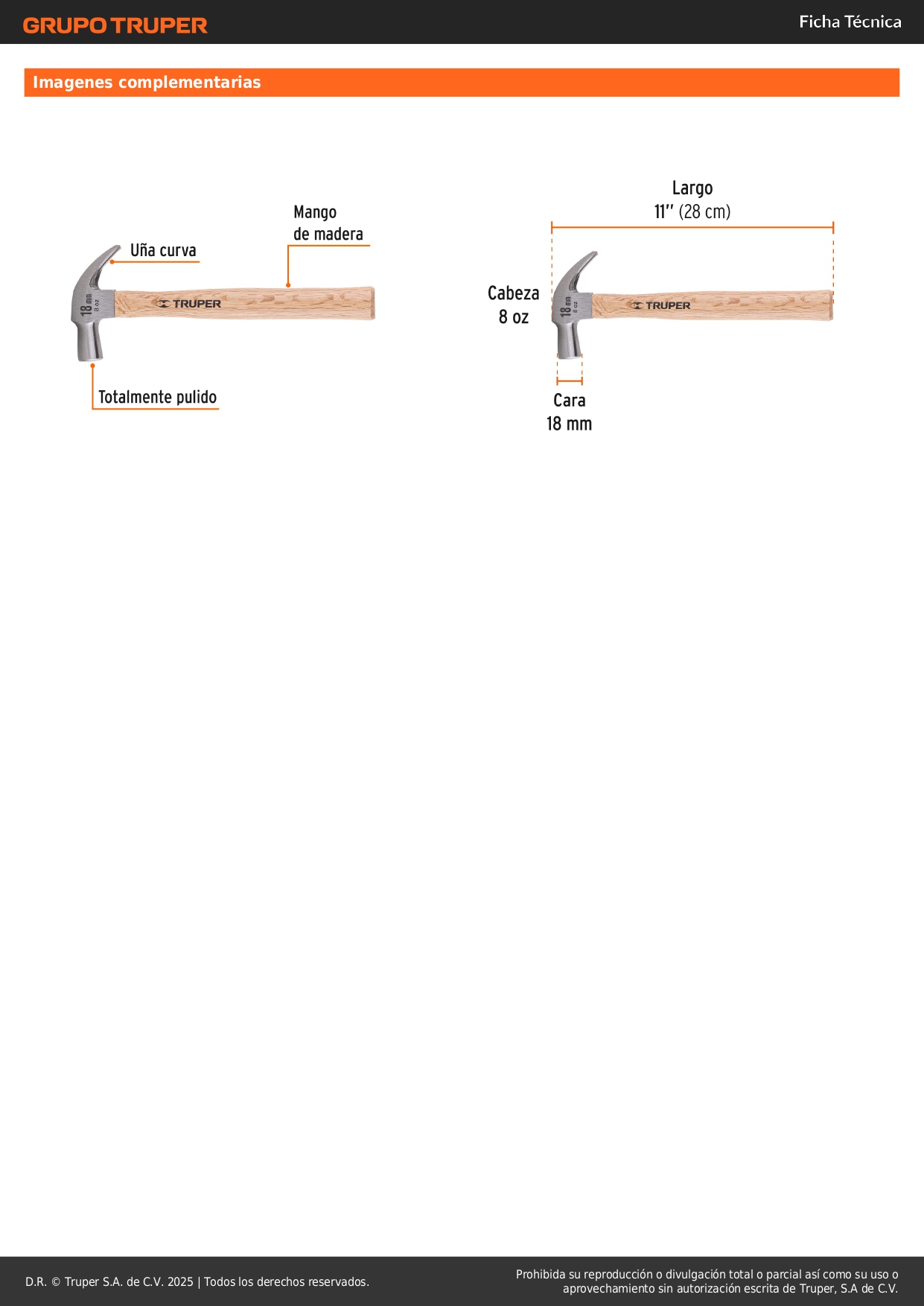 Martillo cabeza cónica 18 mm uña curva. mango madera. truper S/ 14.70 Agregar al carro Avísame cuando llegue -Cabeza cónica de acero totalmente pulido-Mango de madera de encino-Ideal para clavar o extraer clavos