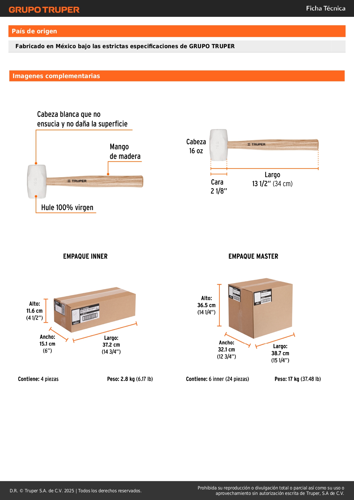 Martillo de goma 16 oz. truper S/ 15.80 Agregar al carro Avísame cuando llegue -Cabeza blanca de hule 100% virgen, que no ensucia ni daña la superficie y proporciona mayor área de impacto-Mango de madera que brinda comodidad durante el golpeo-Ideal para duela, zoclos y superficies delicadas