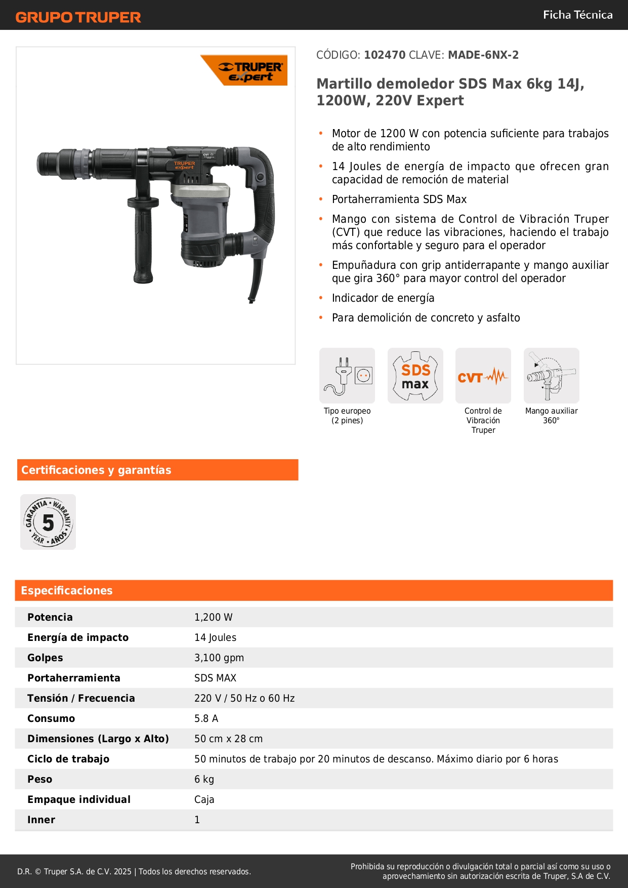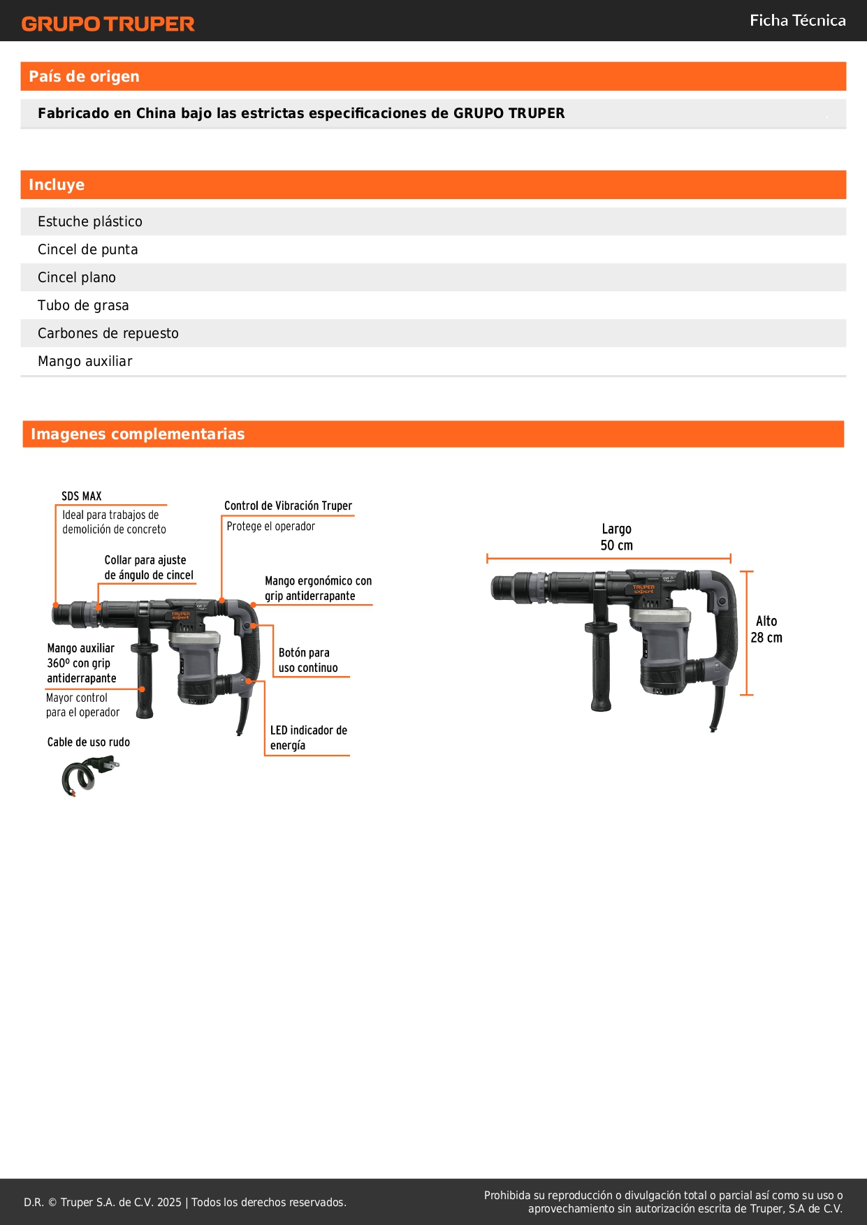 *Mango con sistema de Control de Vibración Truper (CVT) que reduce las vibraciones, haciendo el trabajo más confortable y seguro para el operador