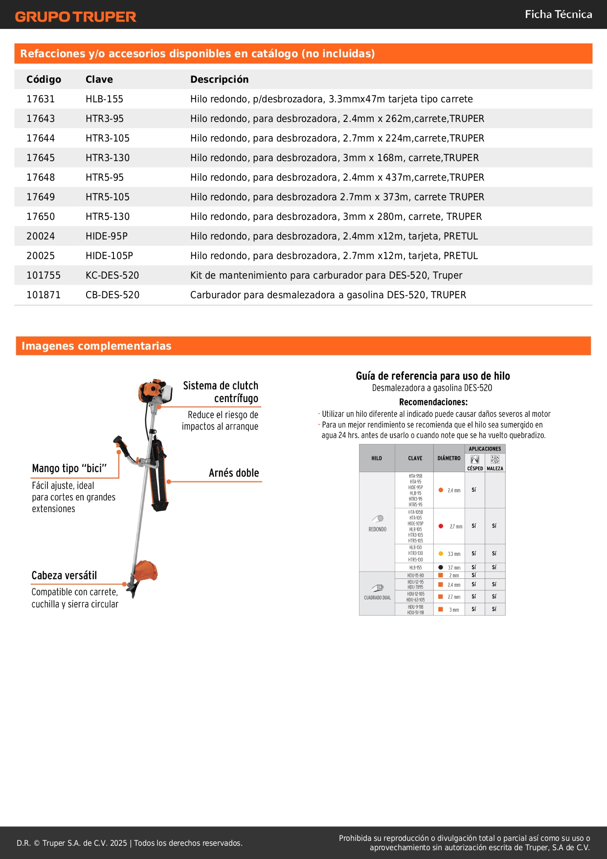 • Para corte en césped, maleza, matorrales, arbustos leñosos y troncos delgados