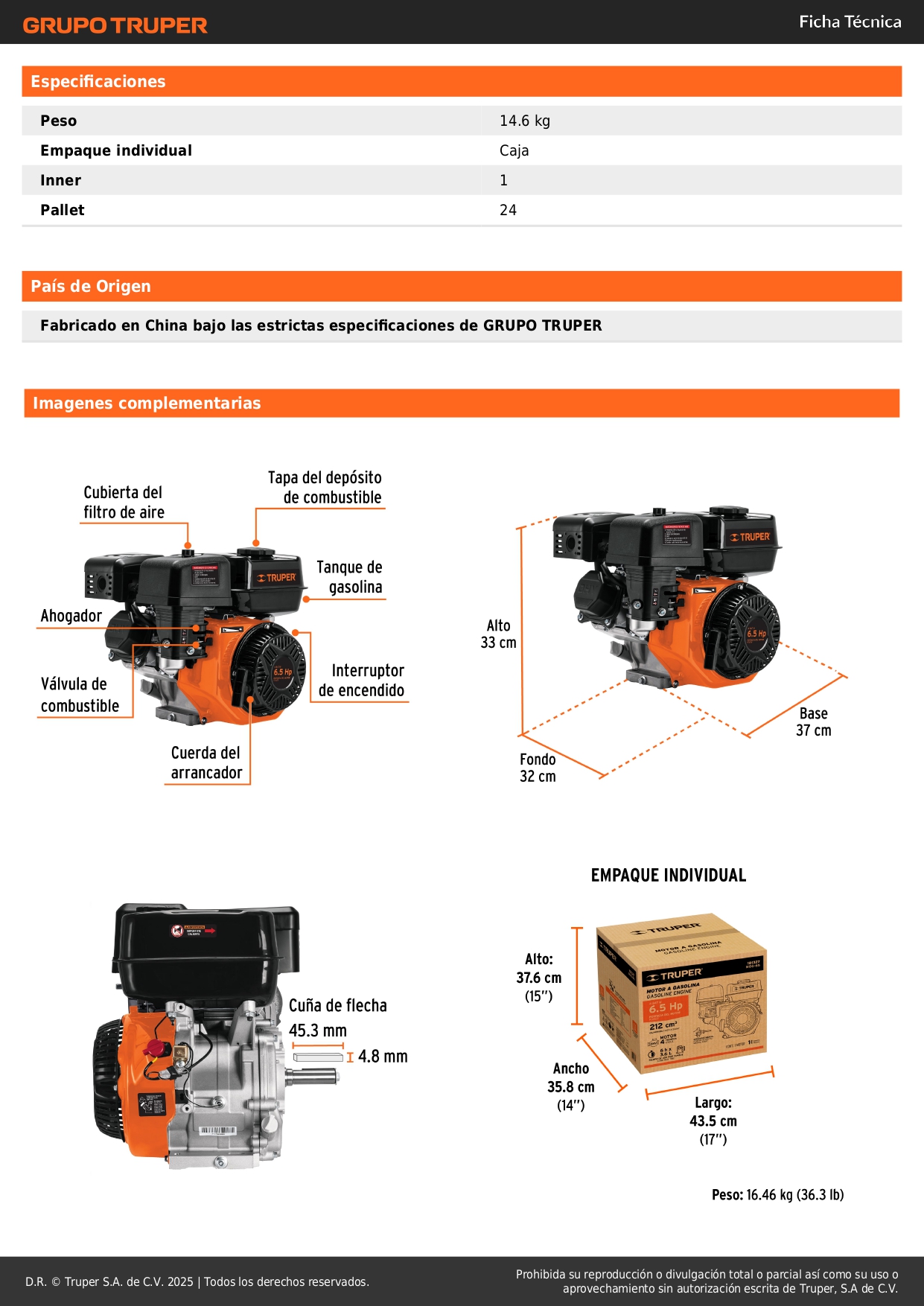 Motor a gasolina 6.5 hp truper