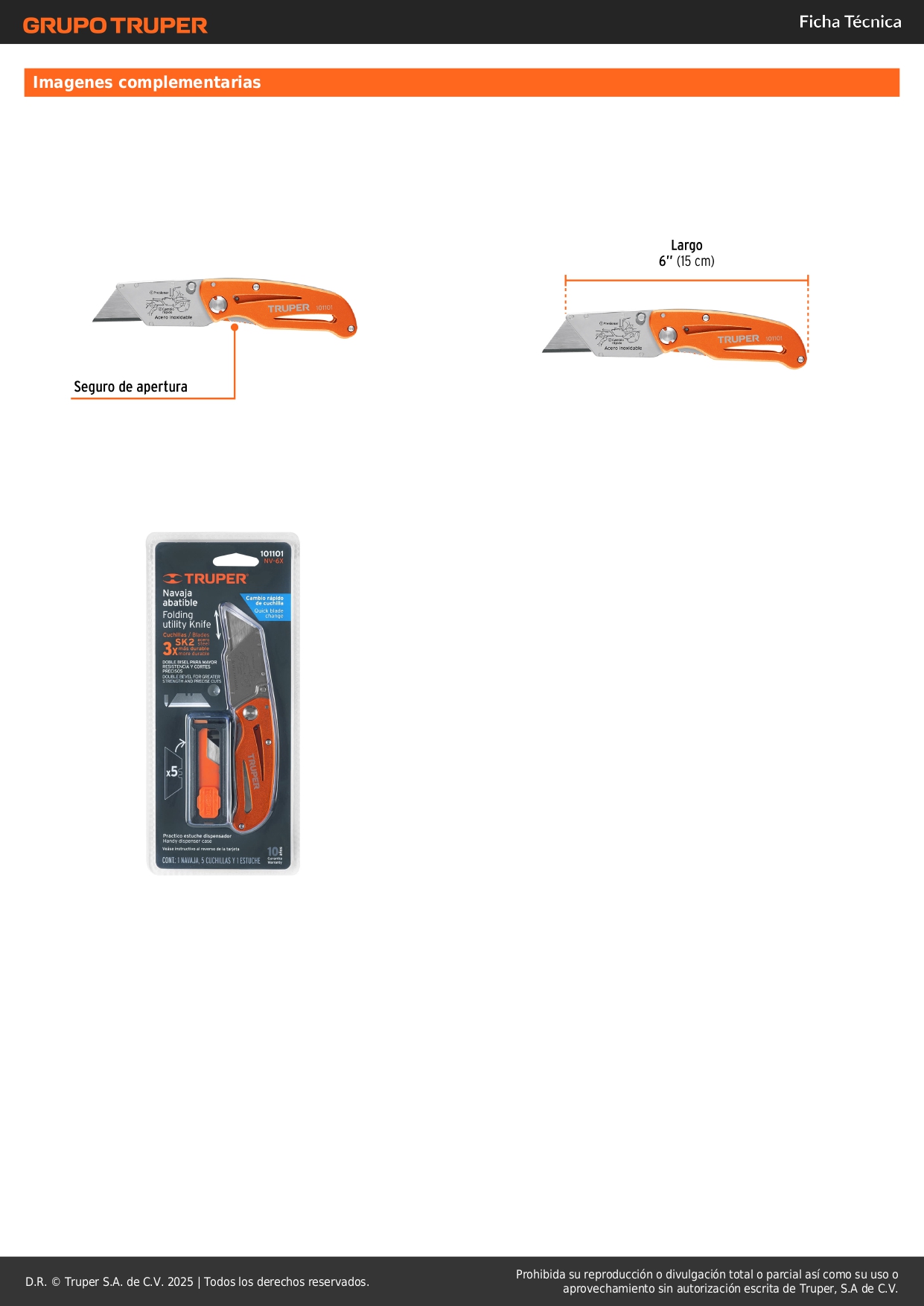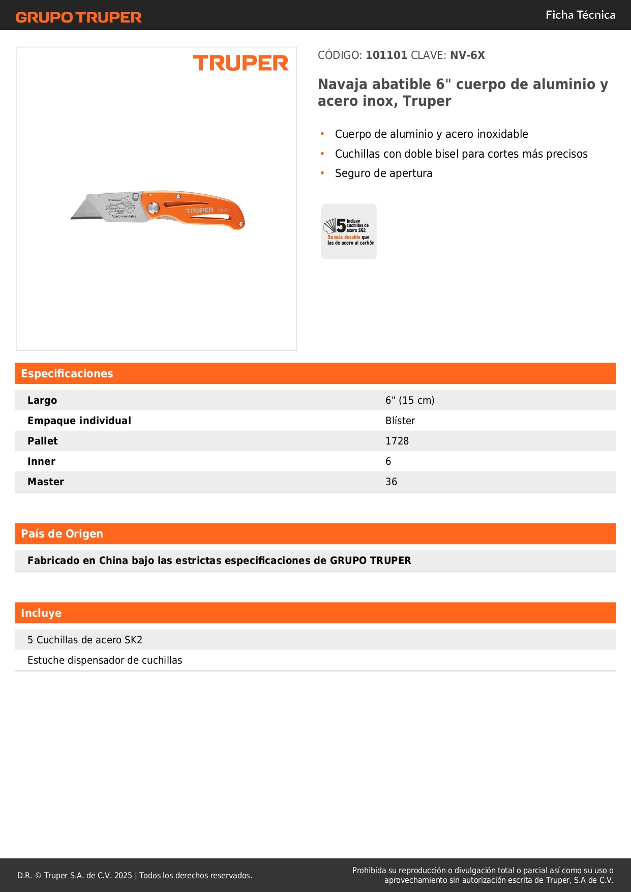 Navaja abatible 6'' cuerpo de aluminio y acero inox truper S/ 21.00 Agregar al carro Avísame cuando llegue -Cuerpo de aluminio y acero inoxidable-Cuchillas con doble bisel para cortes más precisos-Seguro de apertura