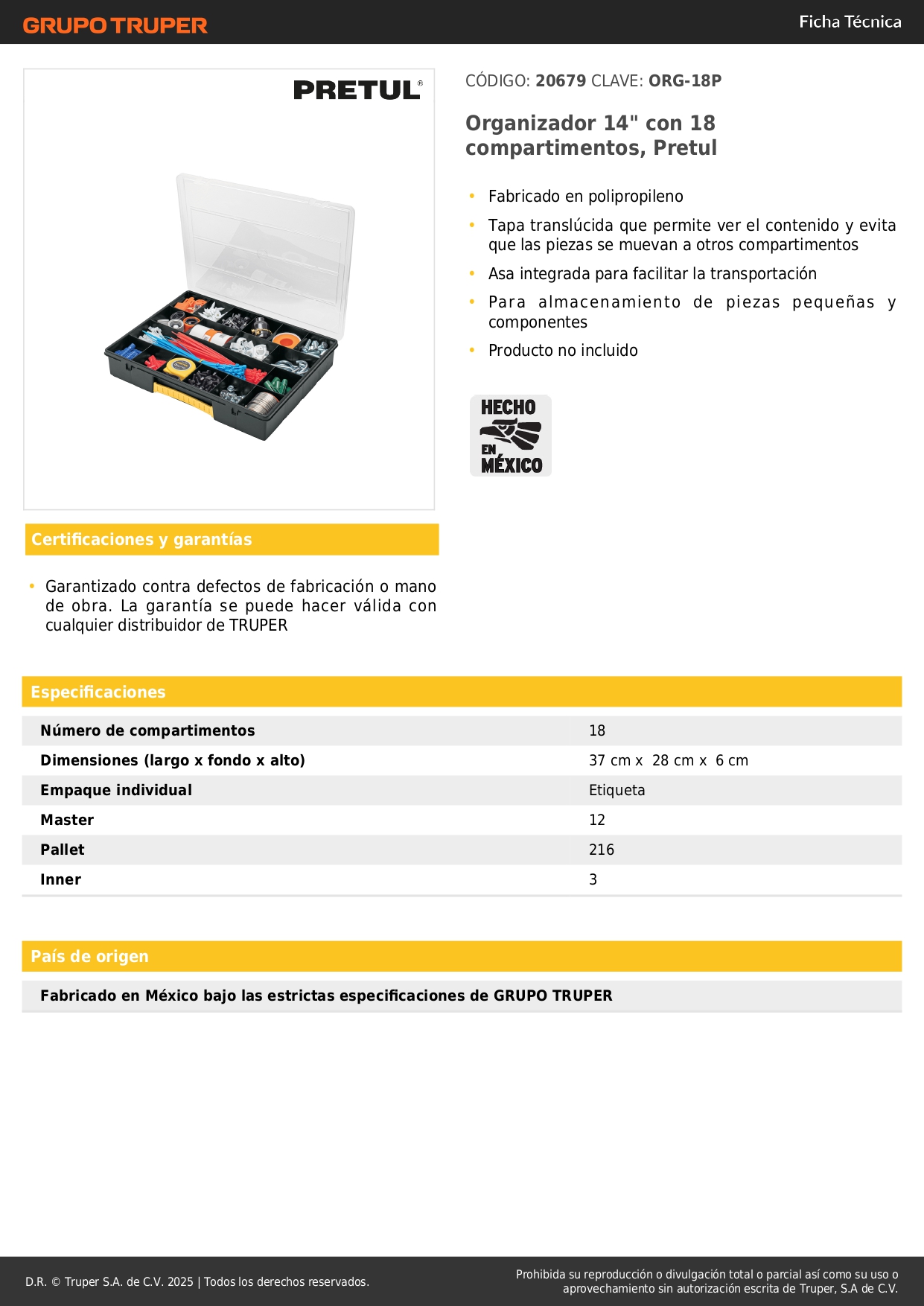 Organizador 14" con 18 compartimentos, Pretul