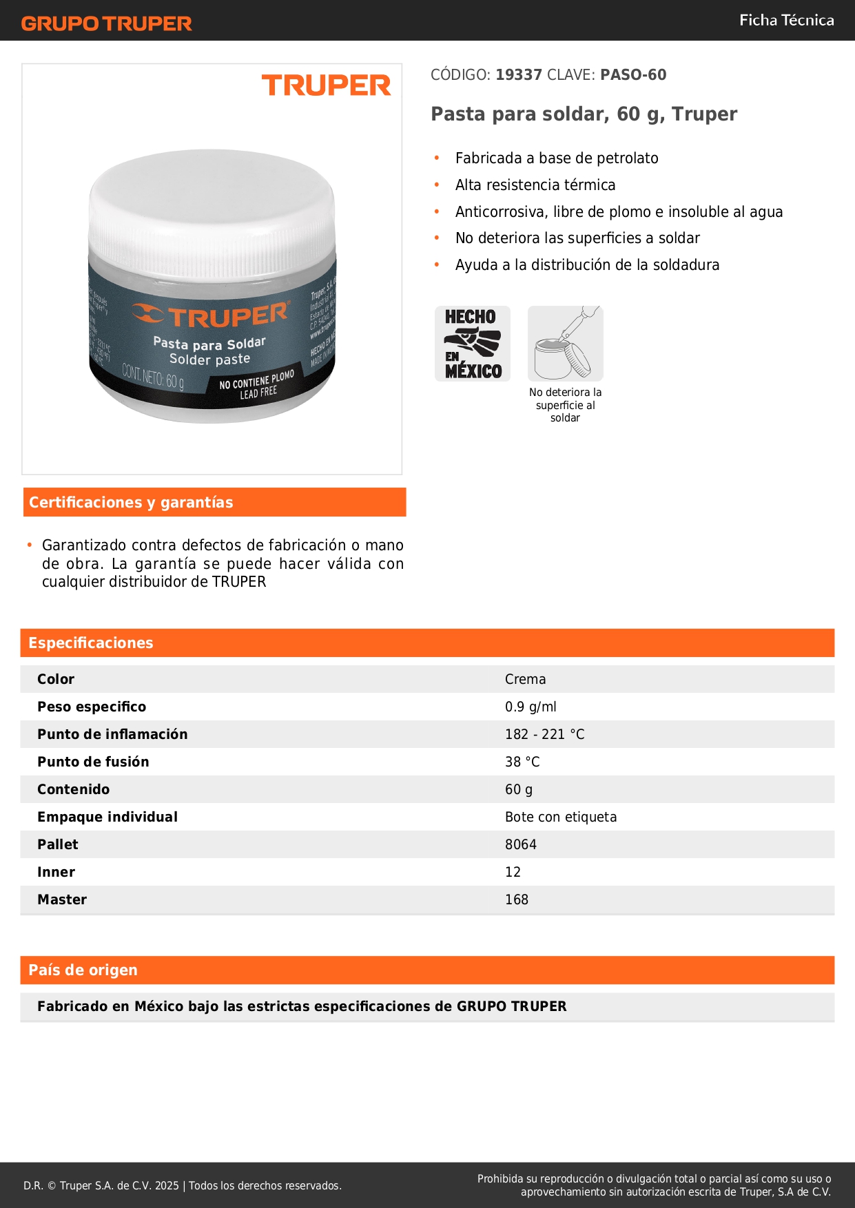 Pasta para soldar, 60 g, truper