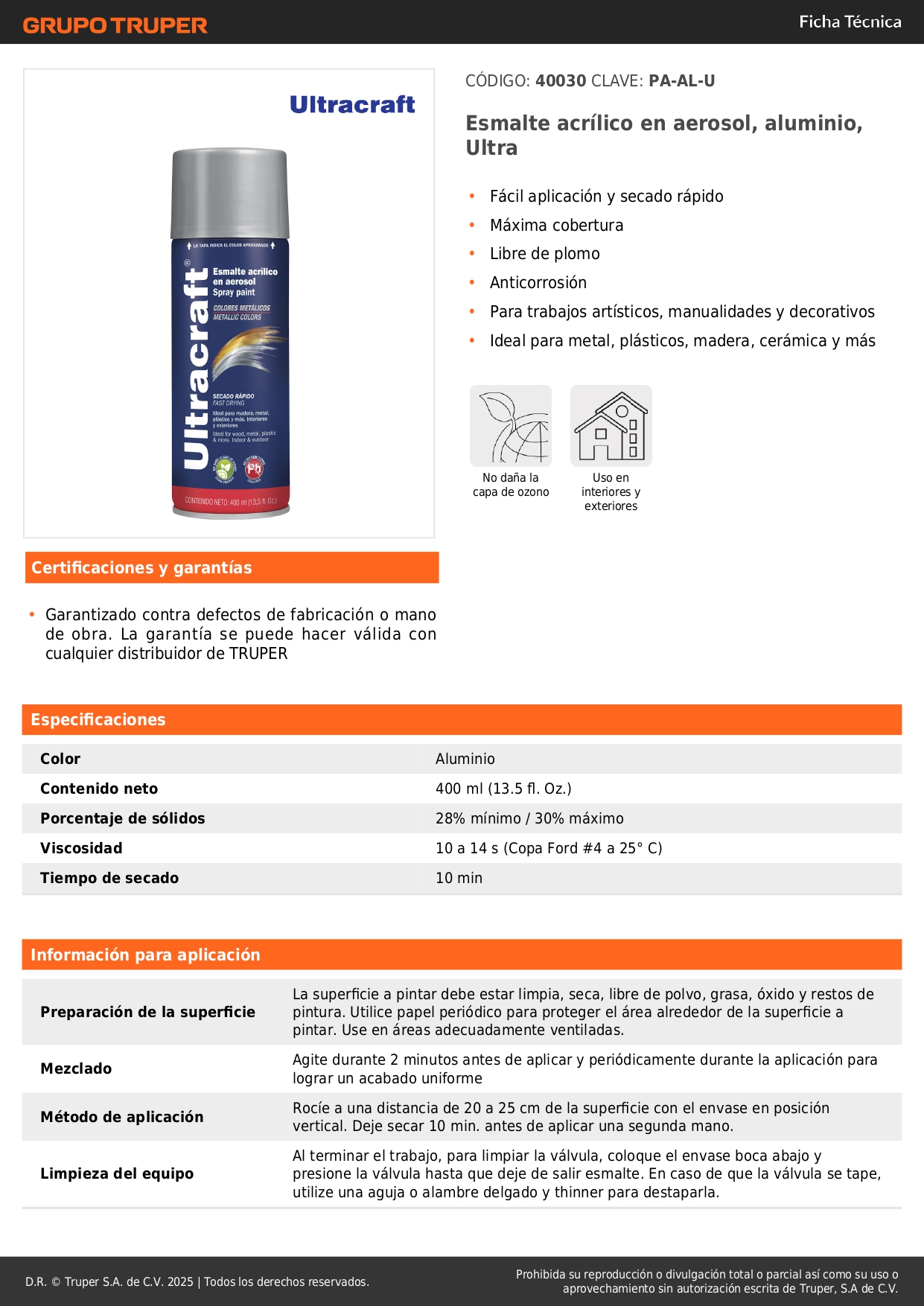 Esmalte acrílico en aerosol, aluminio, Ultra