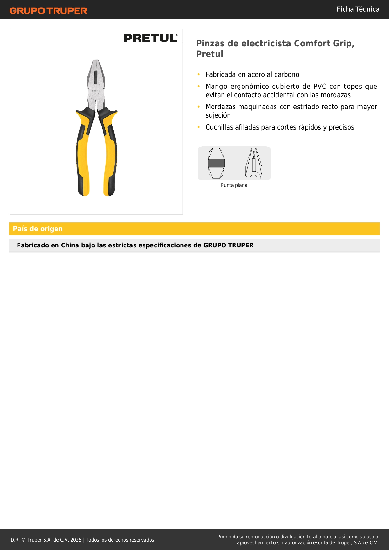Mango ergonómico cubierto de PVC con topes que evitan el contacto accidental con las mordazas