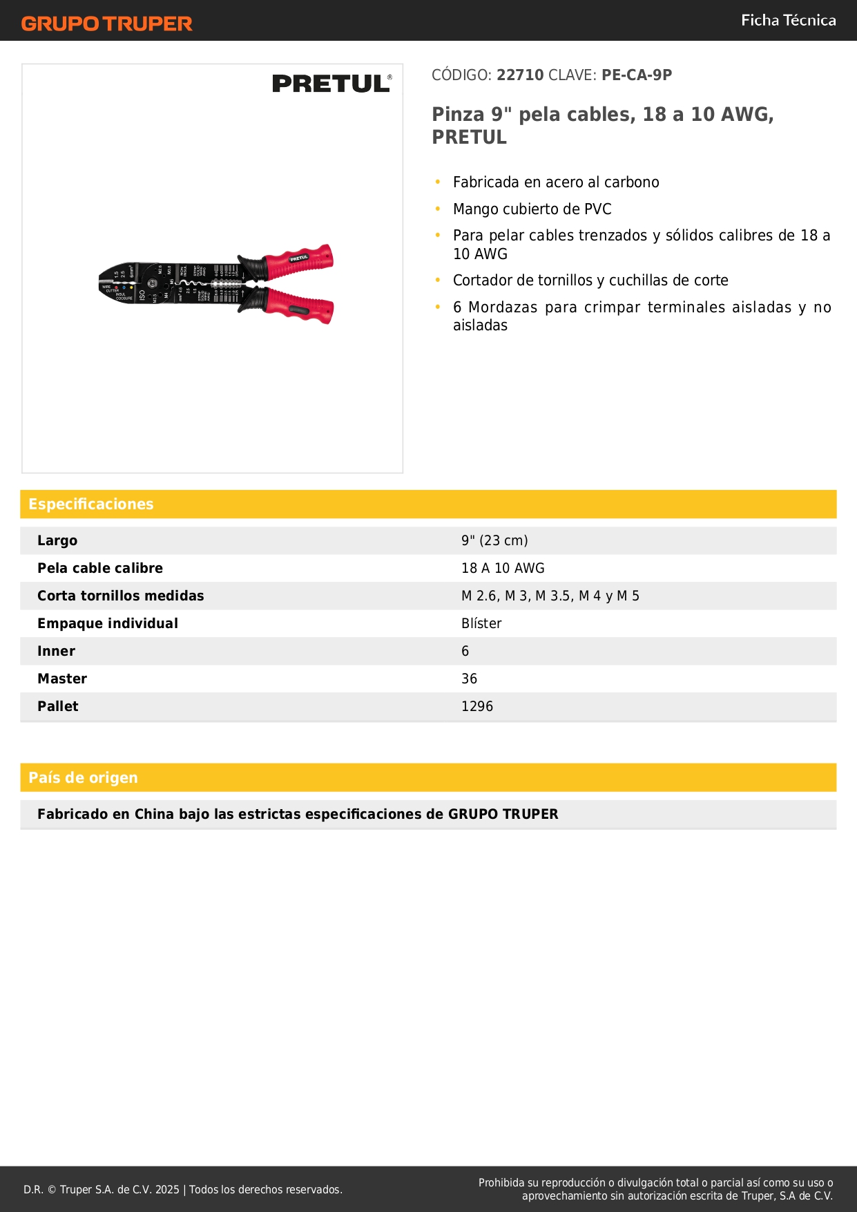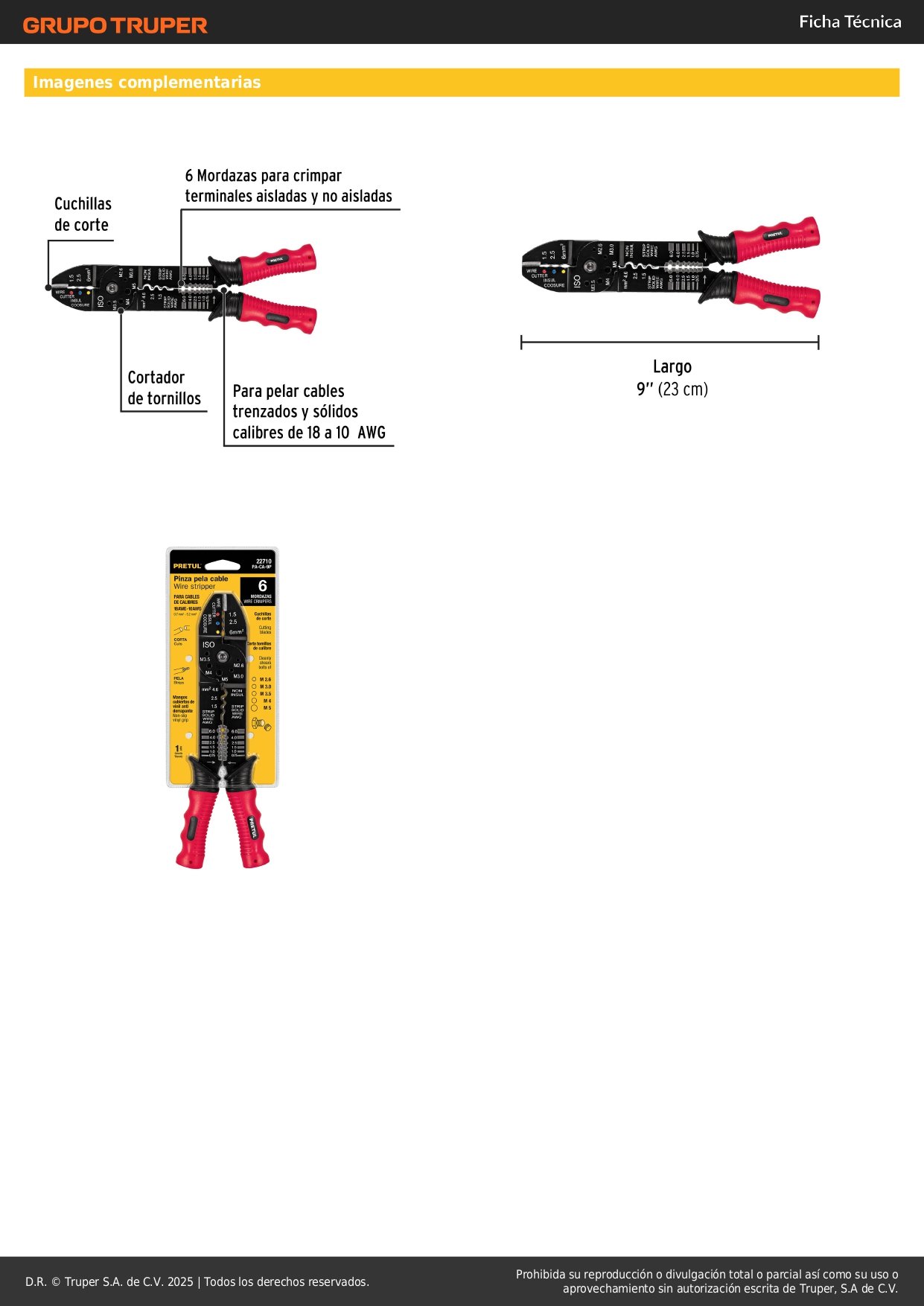 Para pelar cables trenzados y sólidos calibres de 18 a 10 AWG.