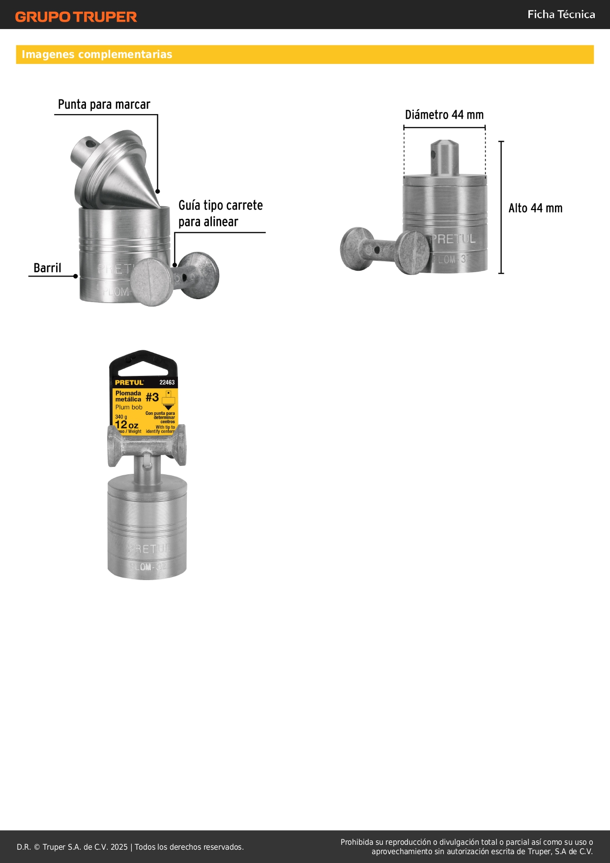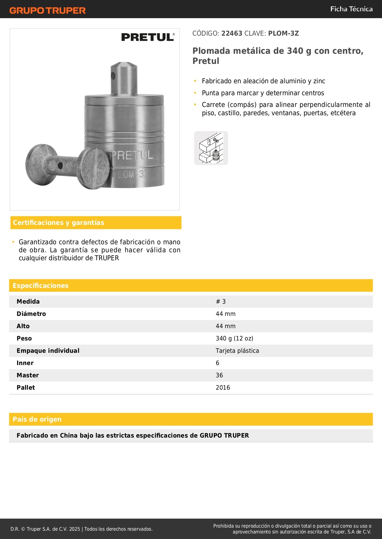 • Carrete (compás) para alinear perpendicularmente al piso, castillo, paredes, ventanas, puertas, etcétera