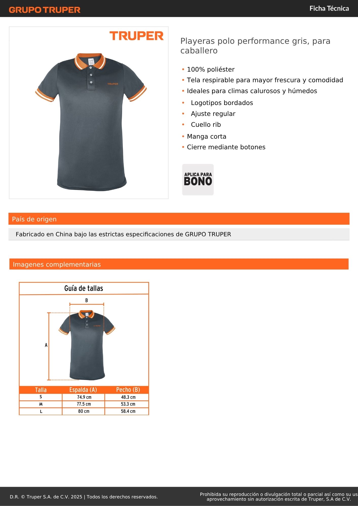 Polo camisero dry fit gris, para caballero, truper S/ 32.40 TALLA S TALLA M TALLA L Agregar al carro Avísame cuando llegue -100% poliéster-Tela respirable para mayor frescura y comodidad-Ideales para climas calurosos y húmedos-Logotipos bordados-Ajuste regular