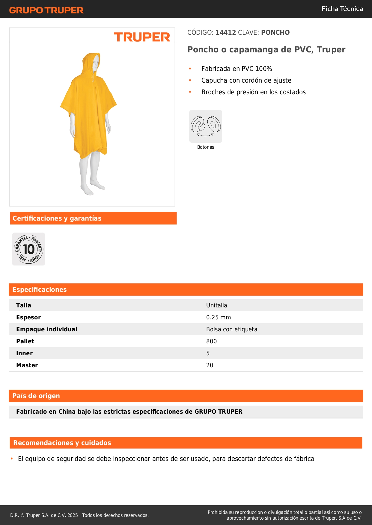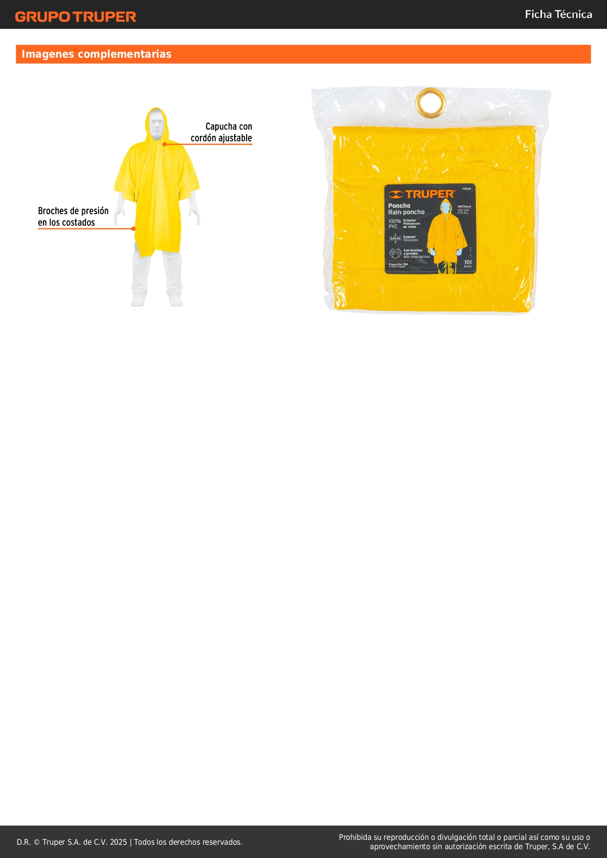 Poncho de pvc truper S/ 24.50 Agregar al carro Avísame cuando llegue -Fabricada en PVC 100%-Capucha con cordón de ajuste-Broches de presión en los costados