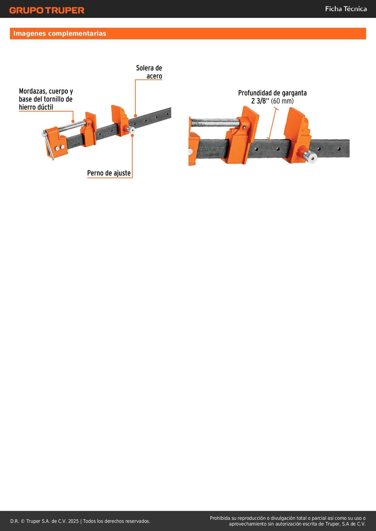 Profundidad de garganta 2 3/8" (60 mm)