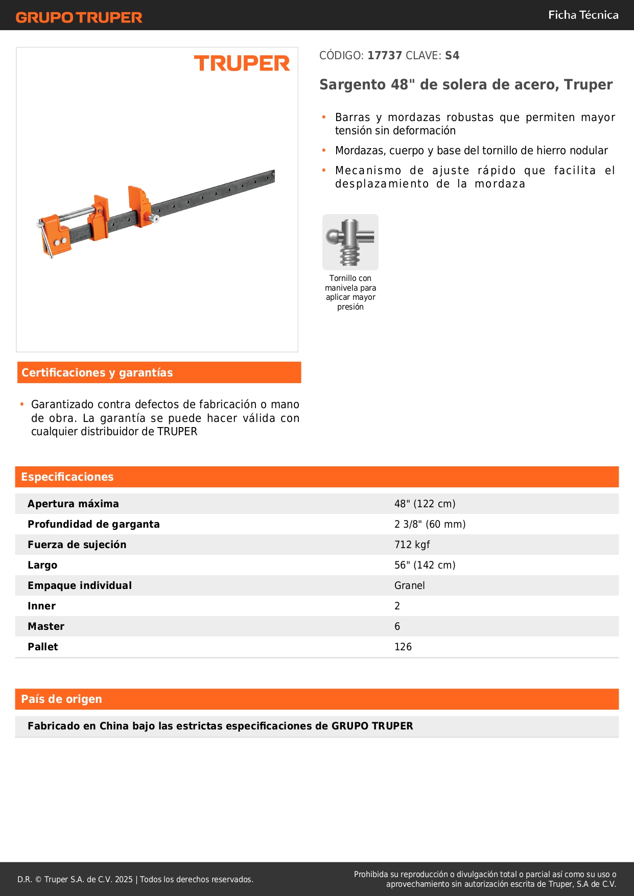 Sargento 48" de solera de acero, Truper