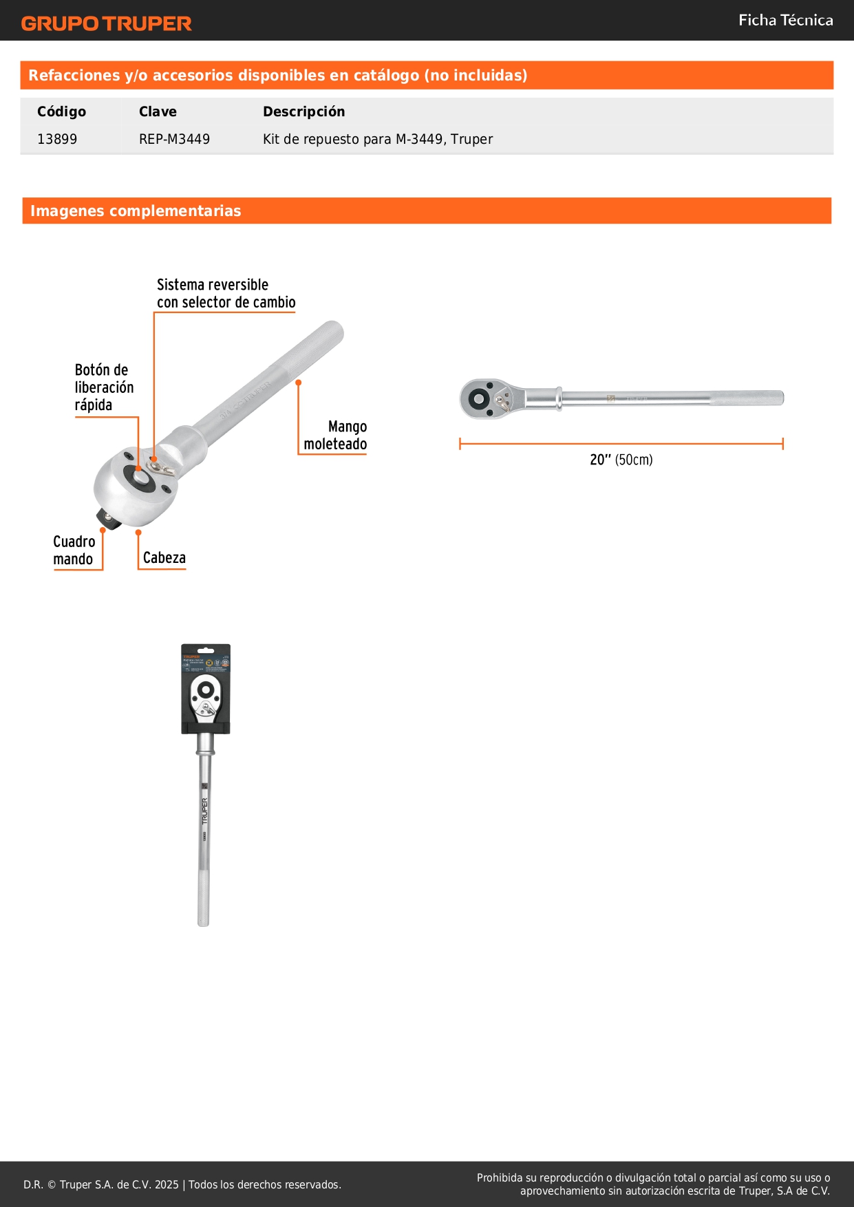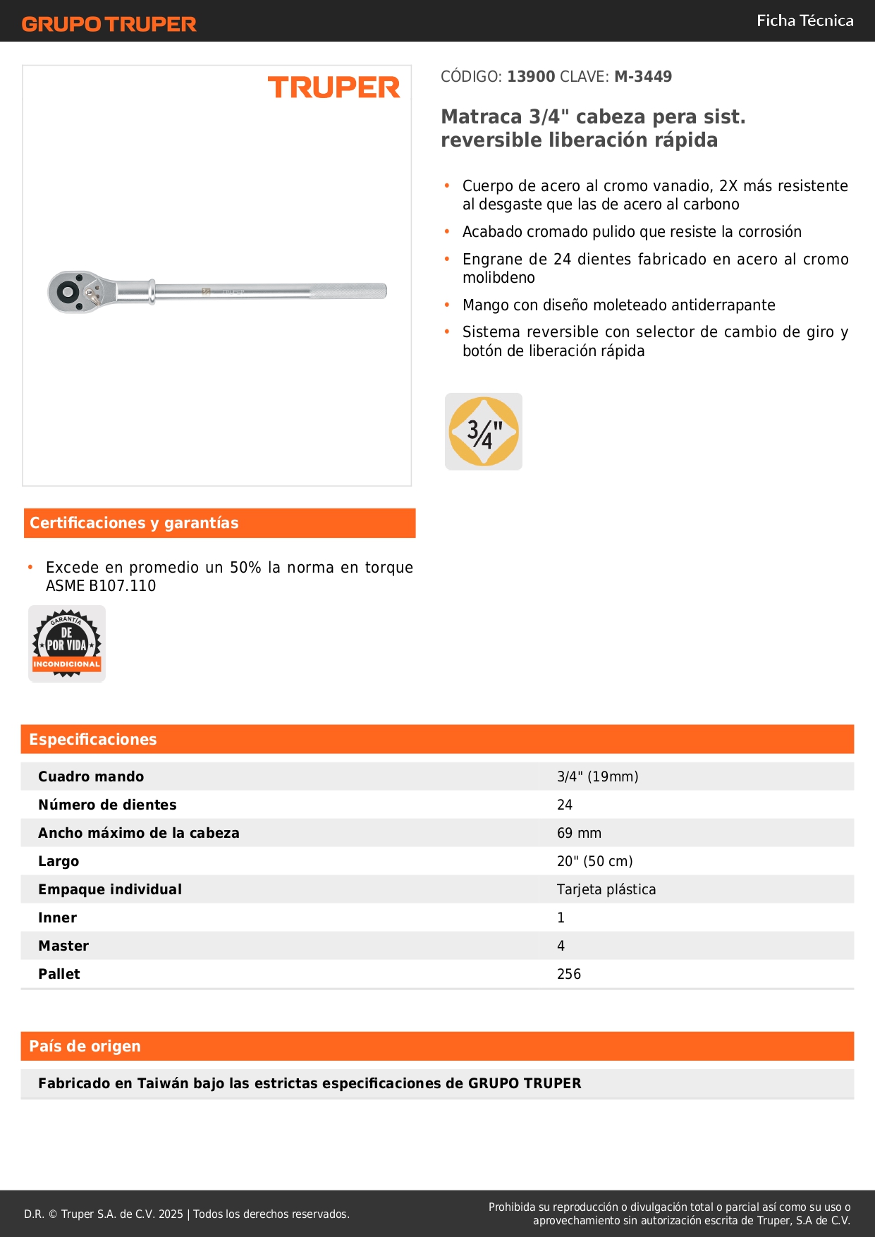 Ratchet 3/4'' cabeza pera sist. reversible liberación rápida truper