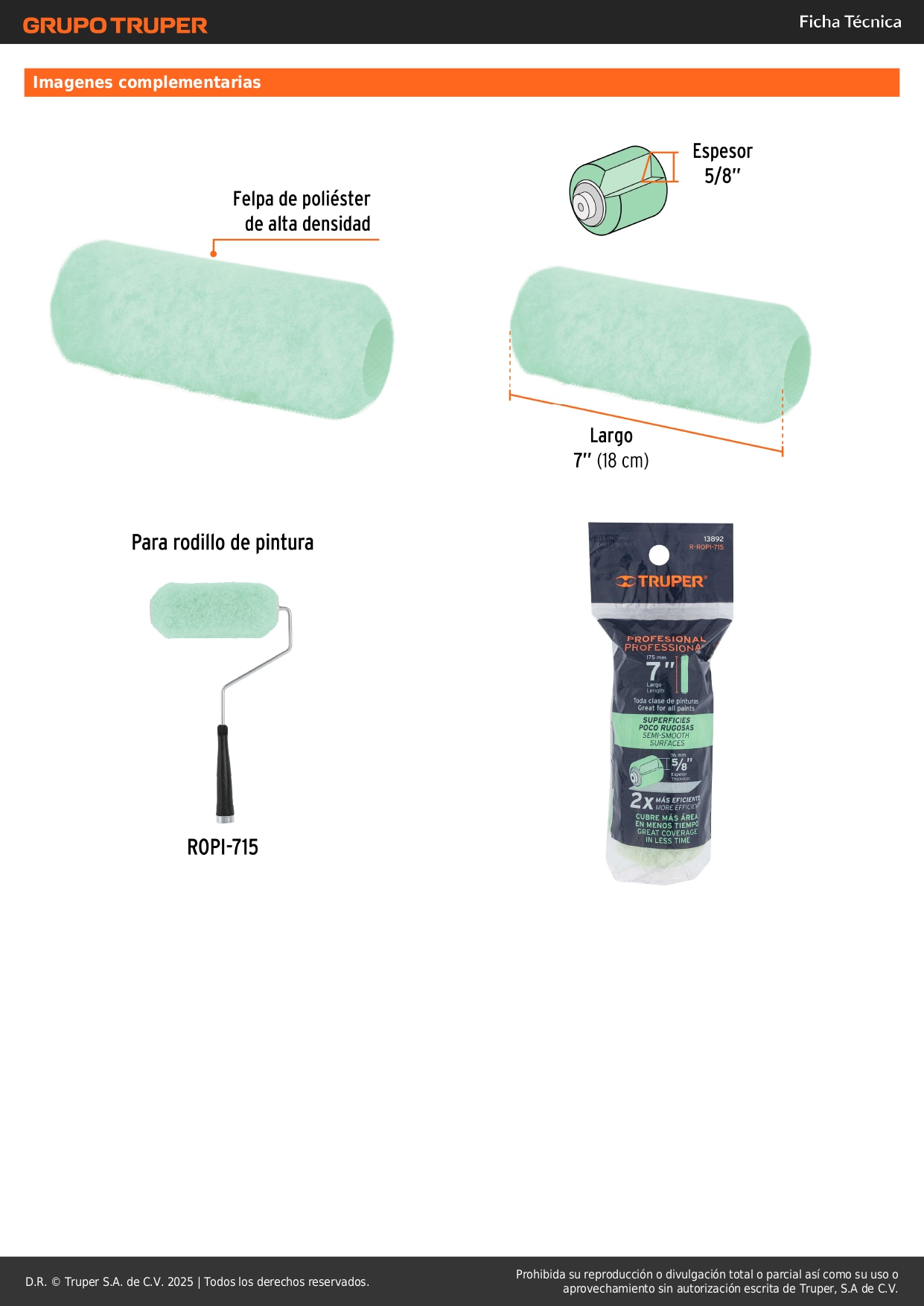 Repuesto para rodillo 7 pulgadas espesor 5/8' profesional