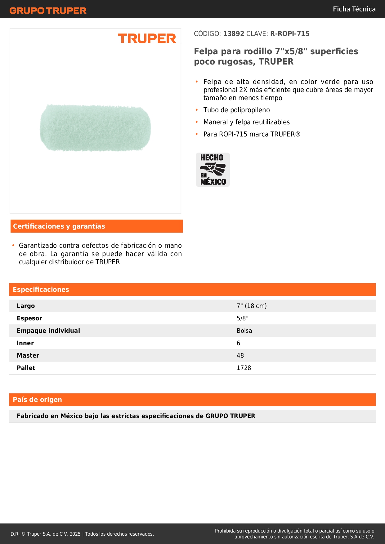 -Felpa de alta densidad, en color verde para uso profesional 2X más eficiente que cubre áreas de mayor tamaño en menos tiempo