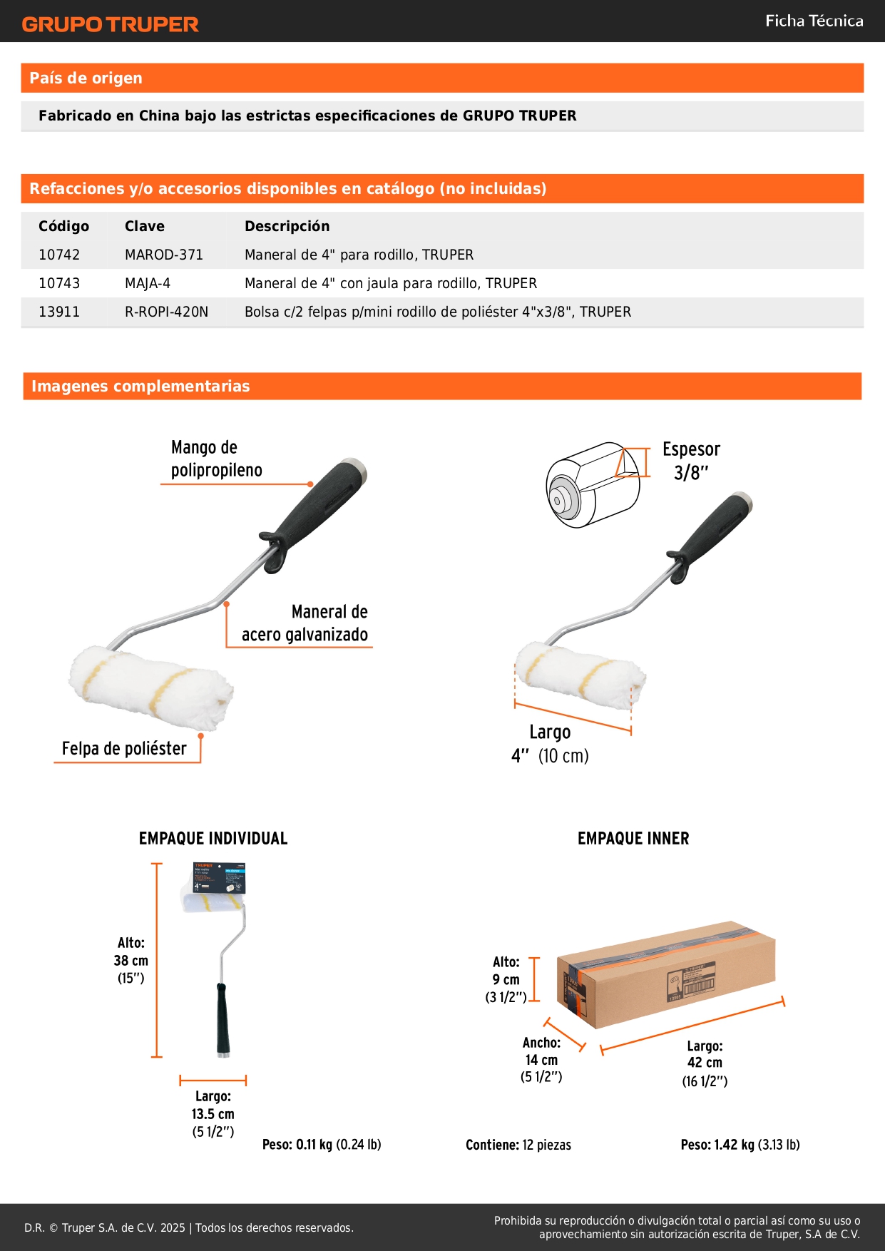 Rodillo 4 pulgadas espesor 3/8' poliéster truper
