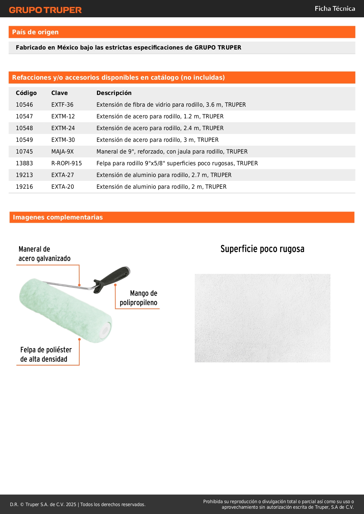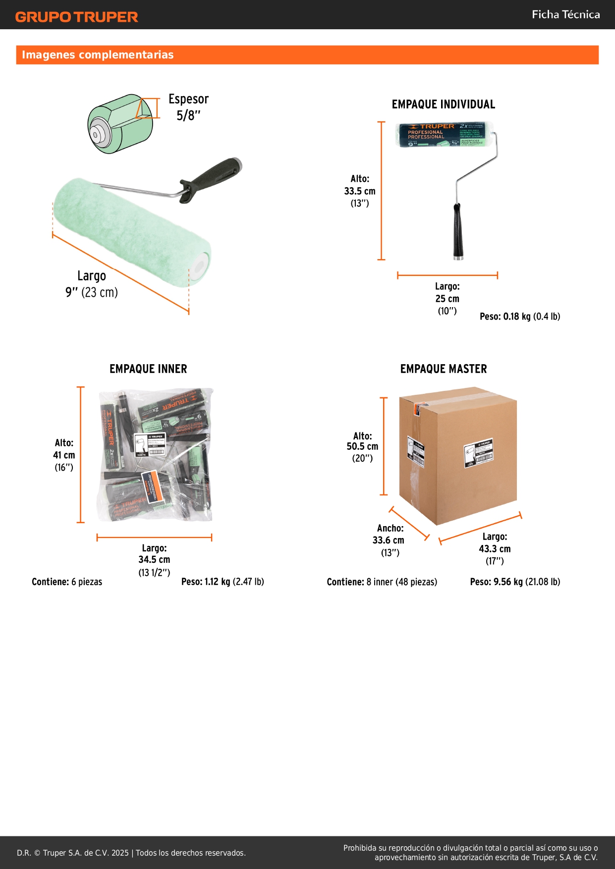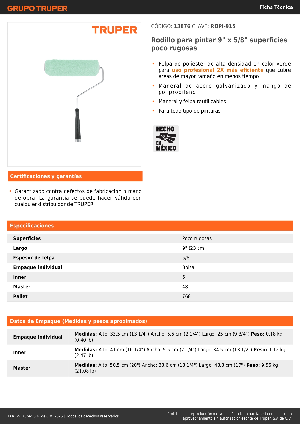 Rodillo para pintar 9´´ x 5/8´´ superficies poco rugosas truper