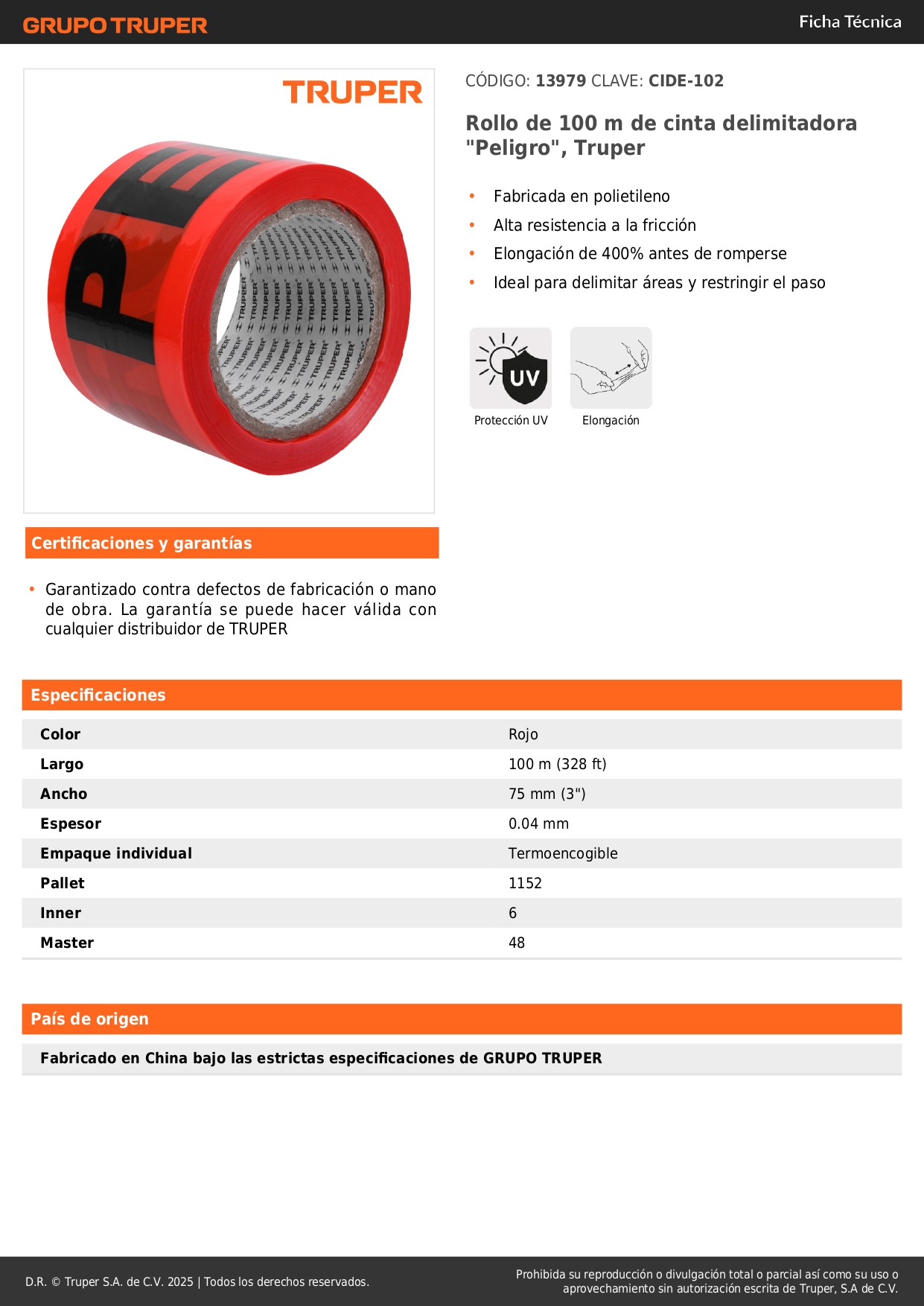 Rollo de 100 m de cinta delimitadora "peligro", truper