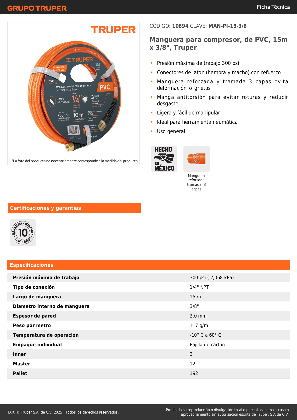 -Presión máxima de trabajo 300 psi