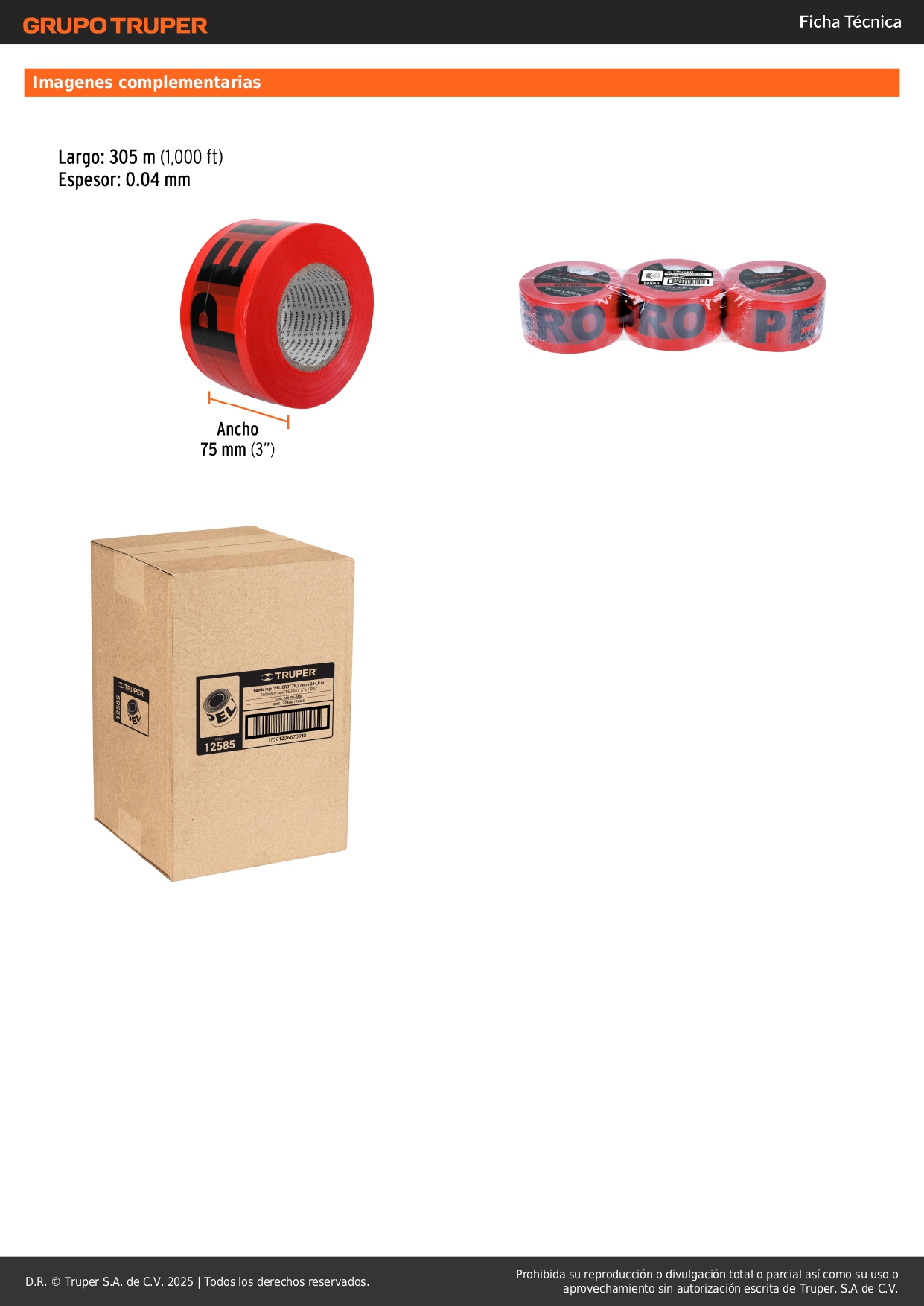 * Ancho: 75 mm (3")
