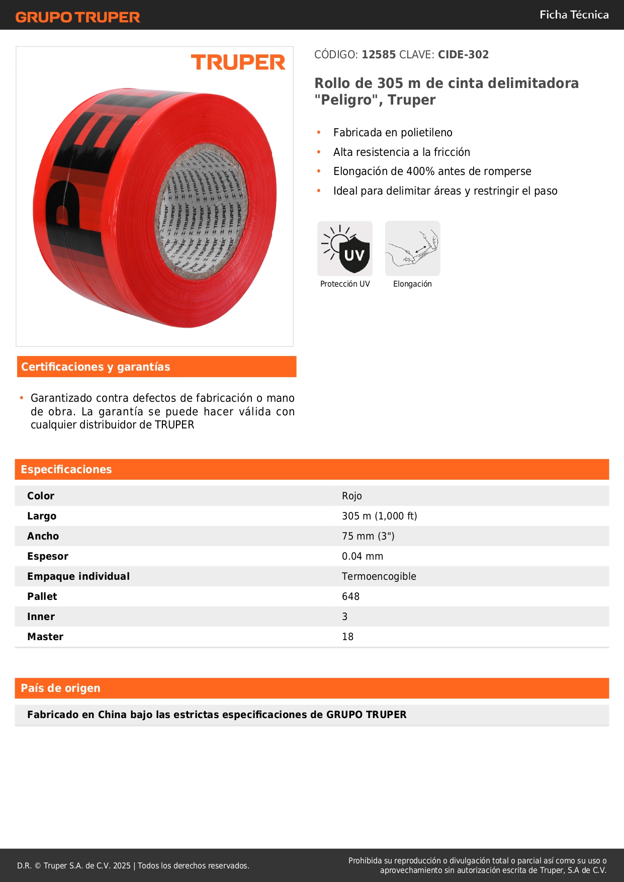 Rollo de 305 m de cinta de seguridad "peligro" truper