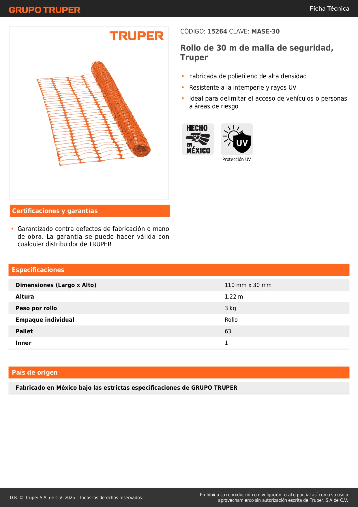Uso: La malla de seguridad puede ser empleada en diversos entornos, como construcción, jardinería, industrias, o incluso en hogares para proteger zonas específicas. Su instalación adecuada puede contribuir a prevenir accidentes y proporcionar un entorno más seguro.