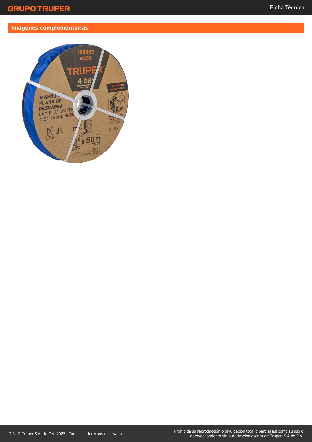 Rollo de manguera plana de 2´´ x 50m de descarga p/motobomba truper