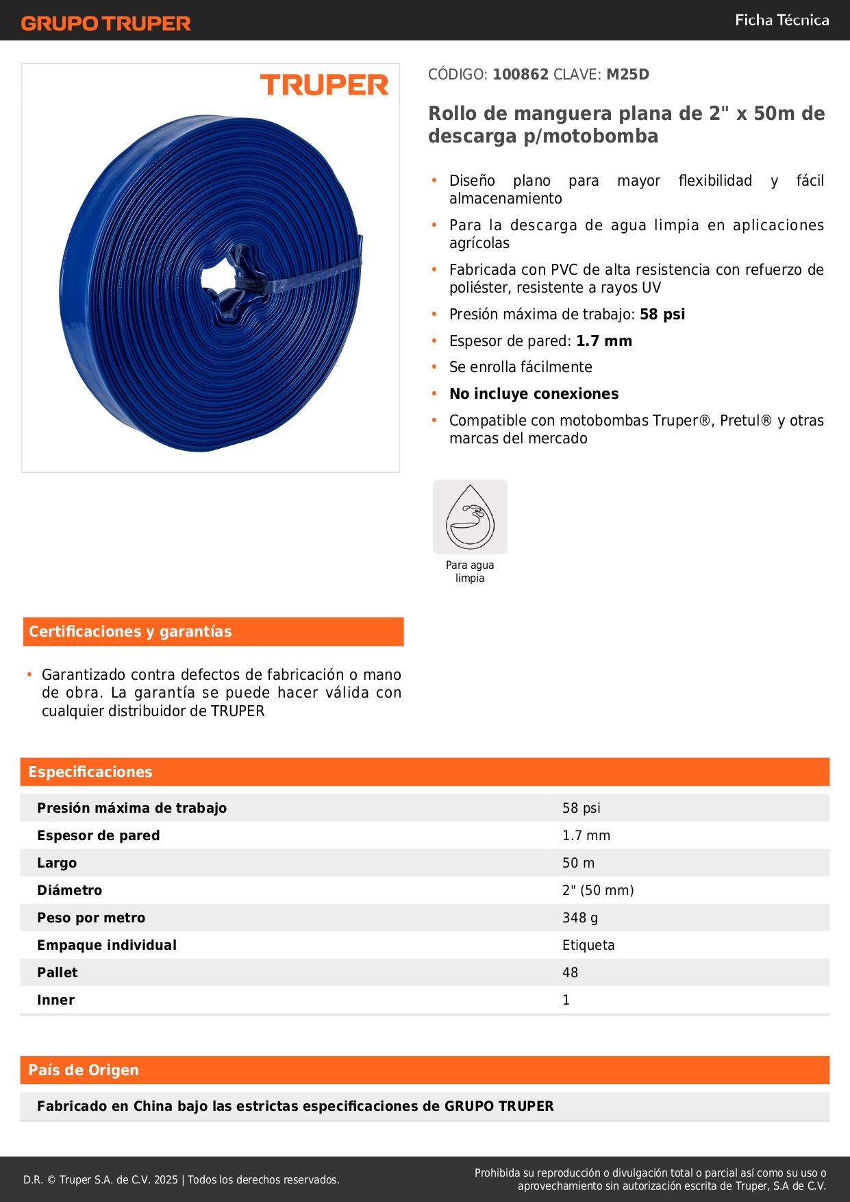 • Compatible con motobombas Truper®, Pretul® y otras