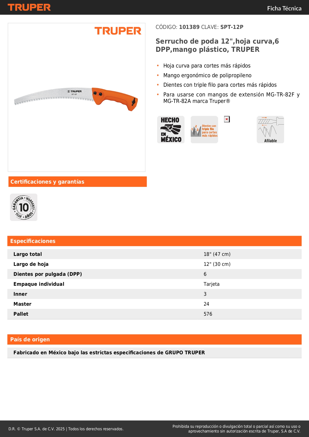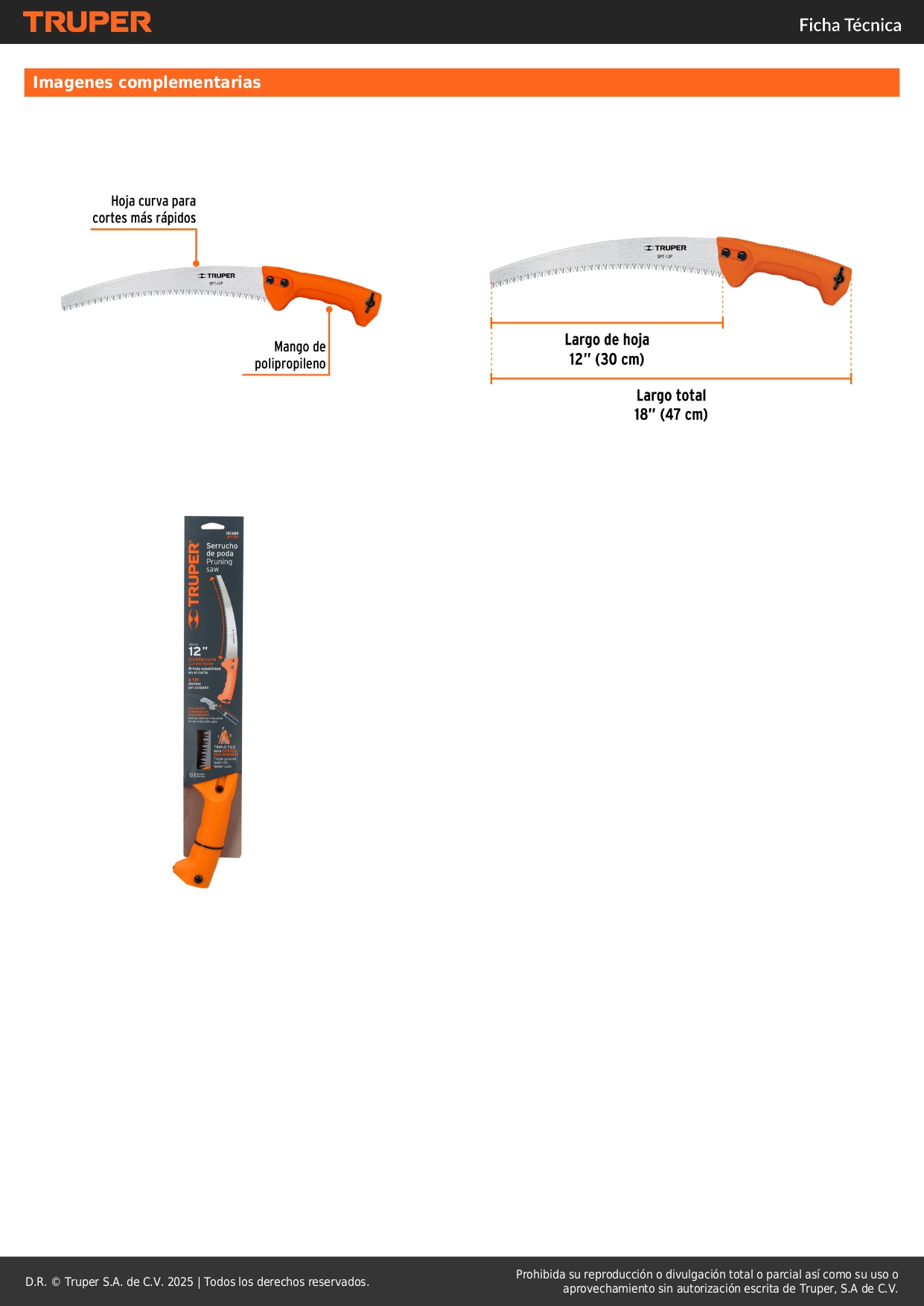 Serrucho de poda hoja curva 12' mango plastico truper