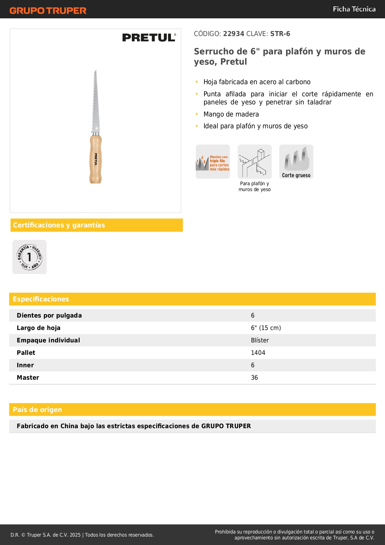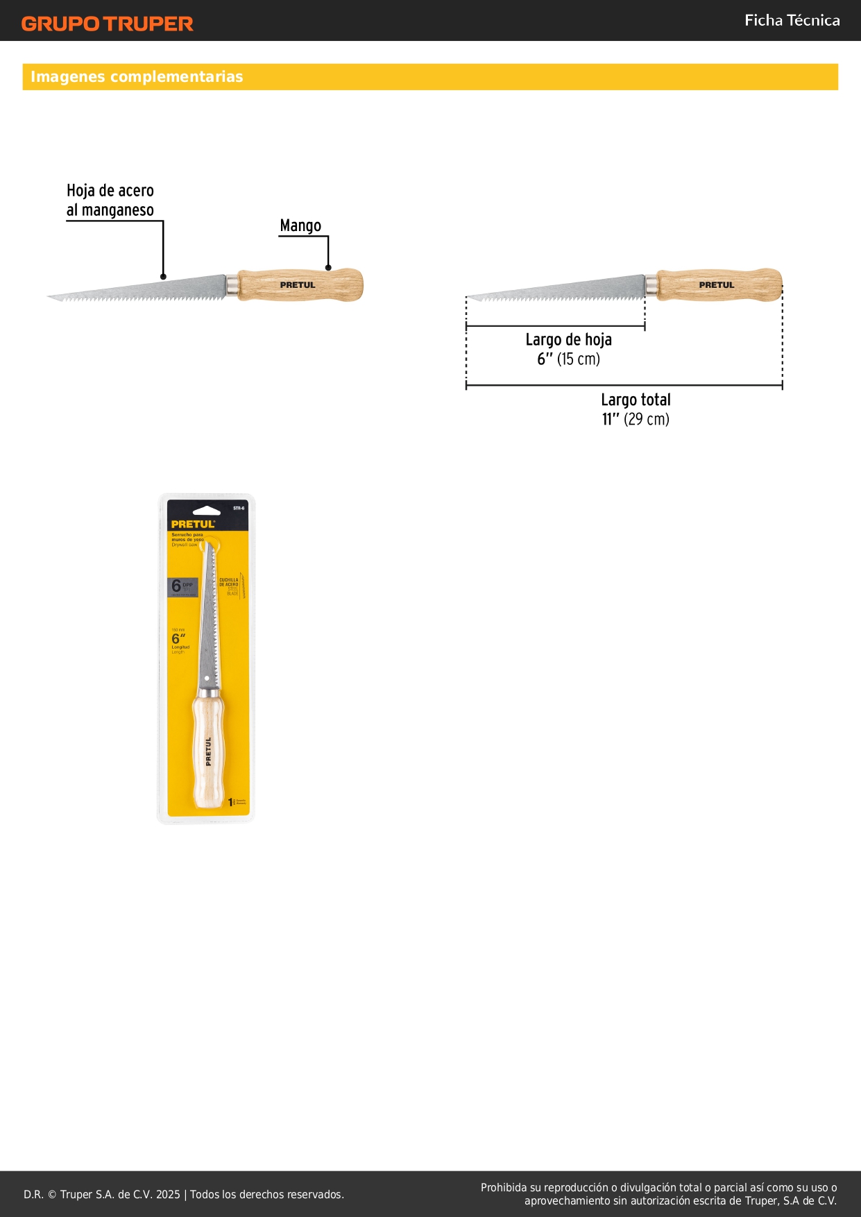 Serrucho de 6" para plafón y muros de yeso, Pretul