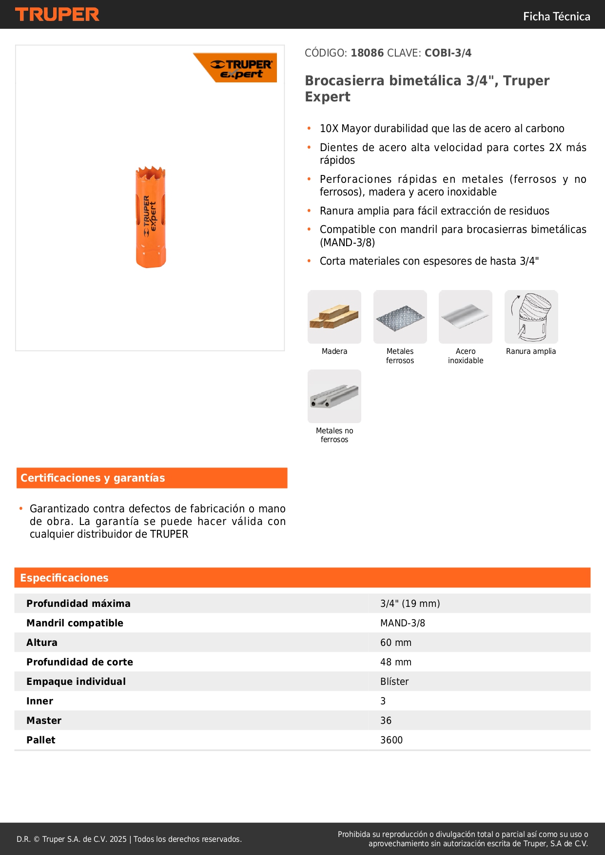-Perforaciones rápidas en metales (ferrosos y no ferrosos), madera y acero inoxidable