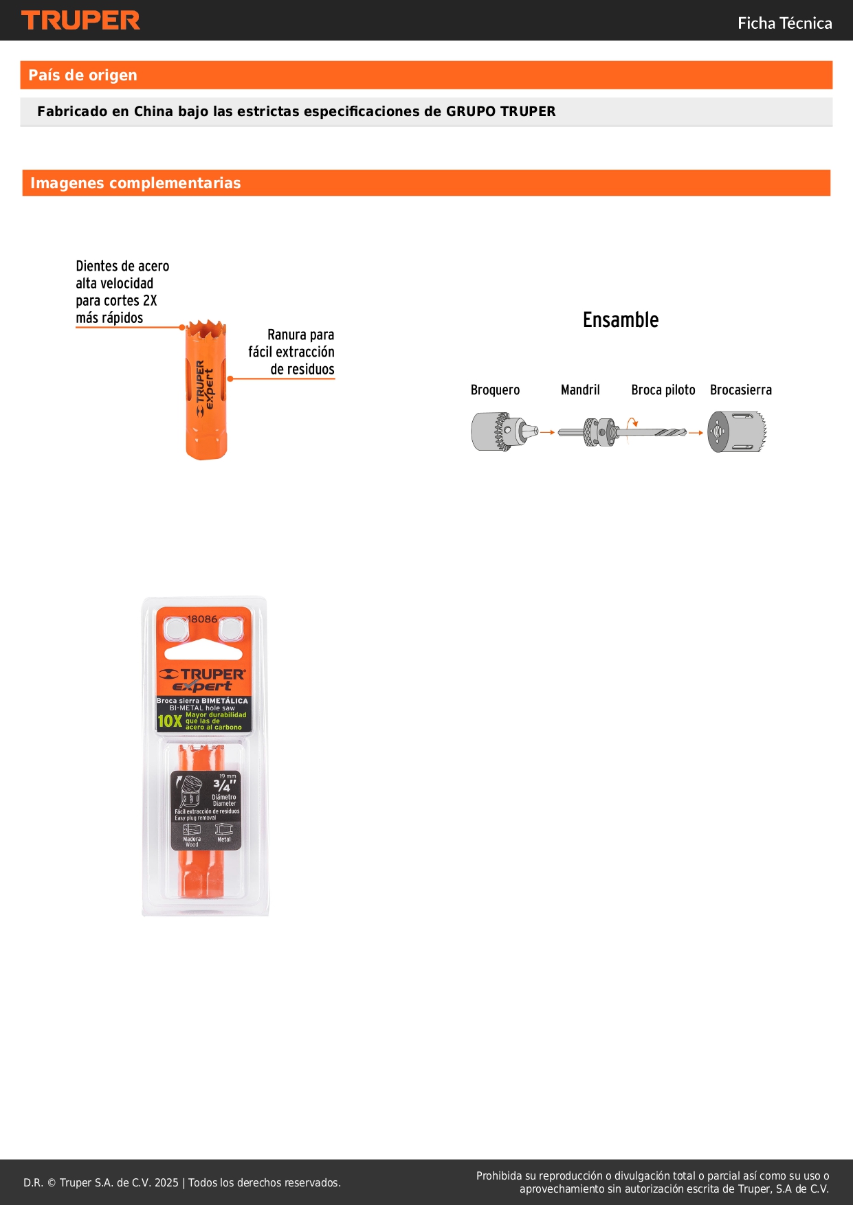 Sierra copa bimetálica 3/4´´, truper expert
