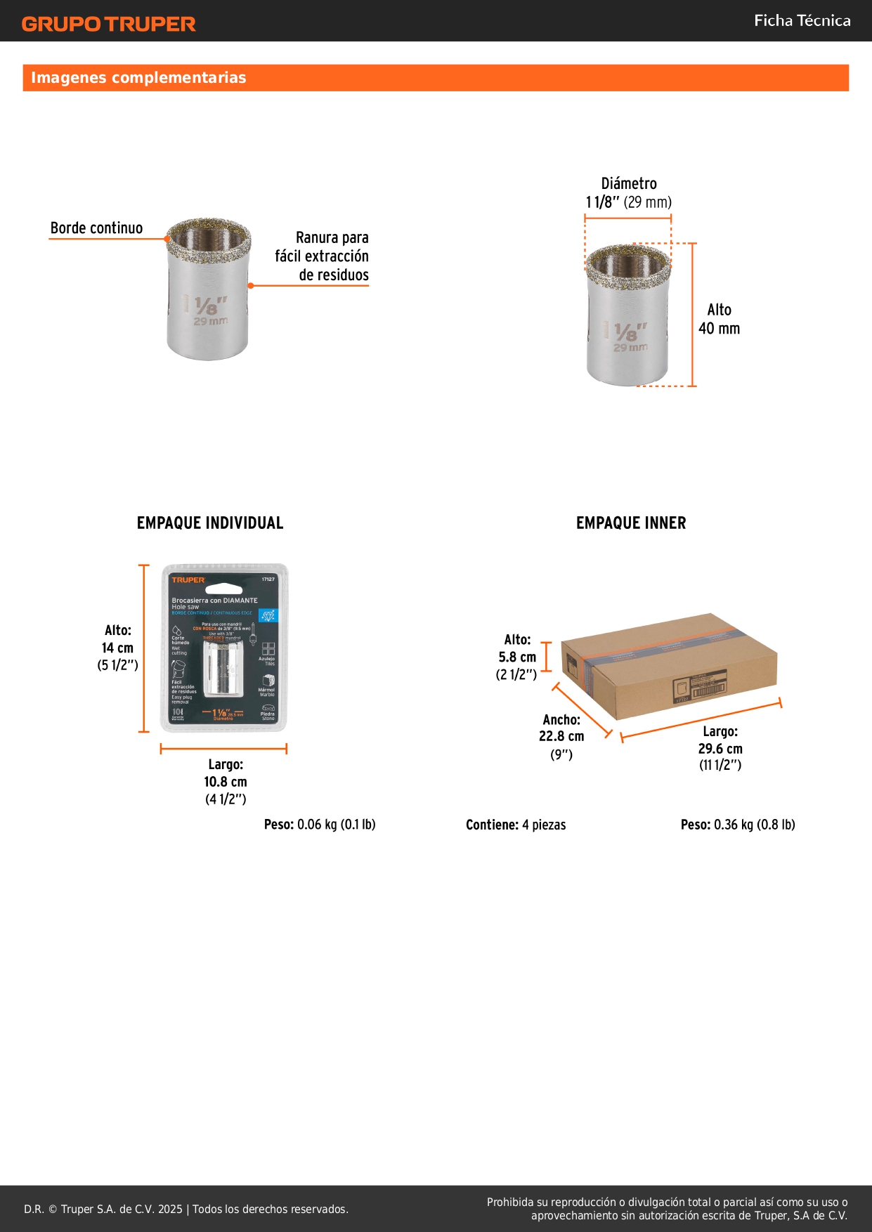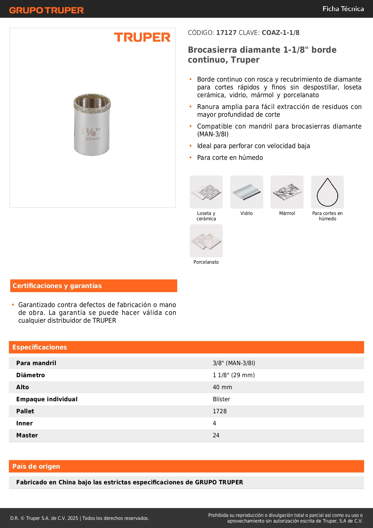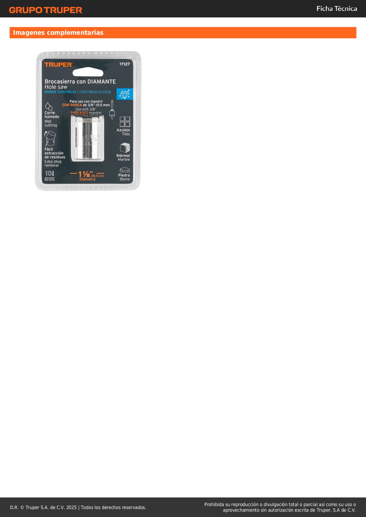 Sierra copa con diamante 1-1/8´´ borde continuo, truper