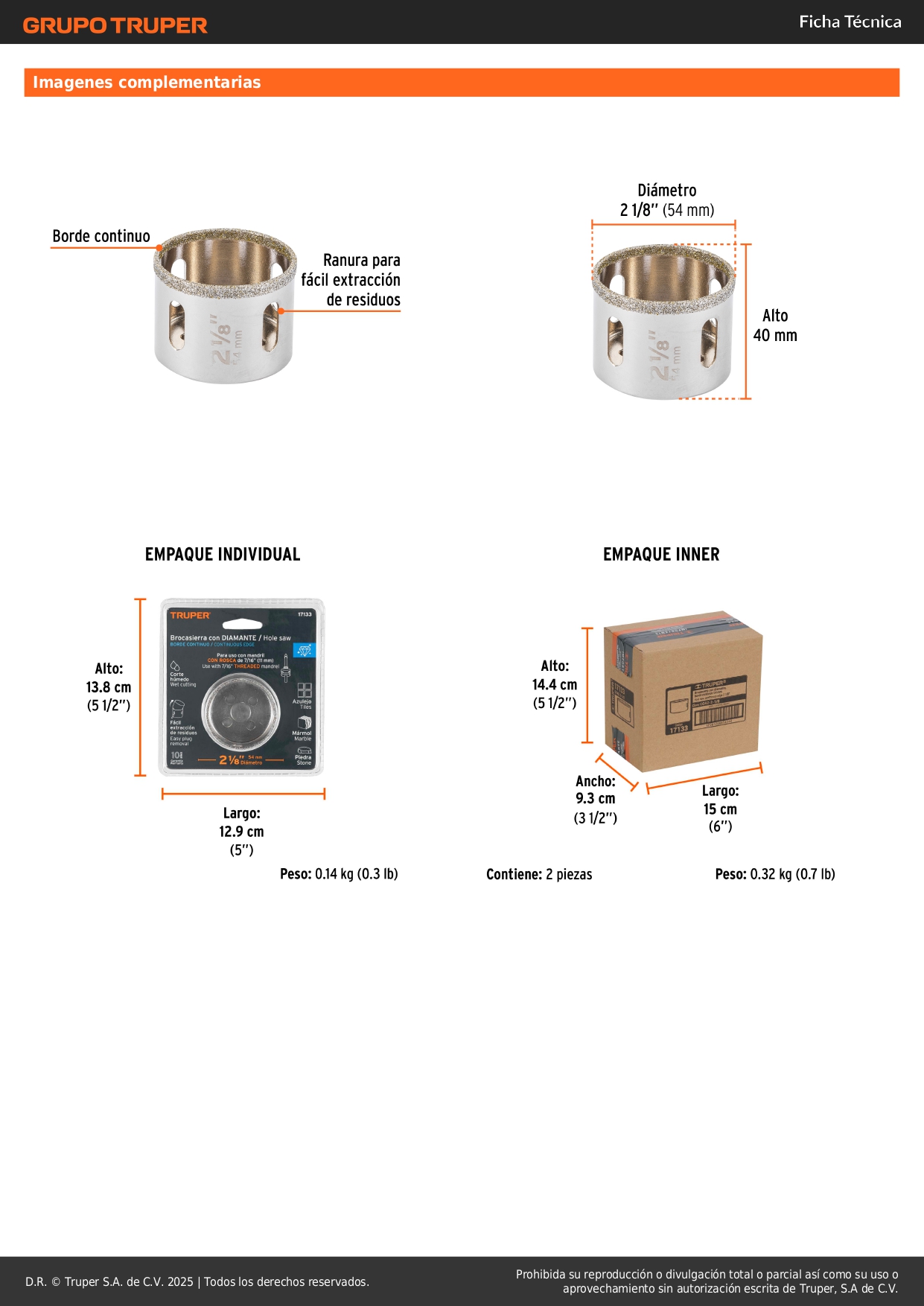 Sierra copa con diamante 2-1/8´´ borde continuo, truper