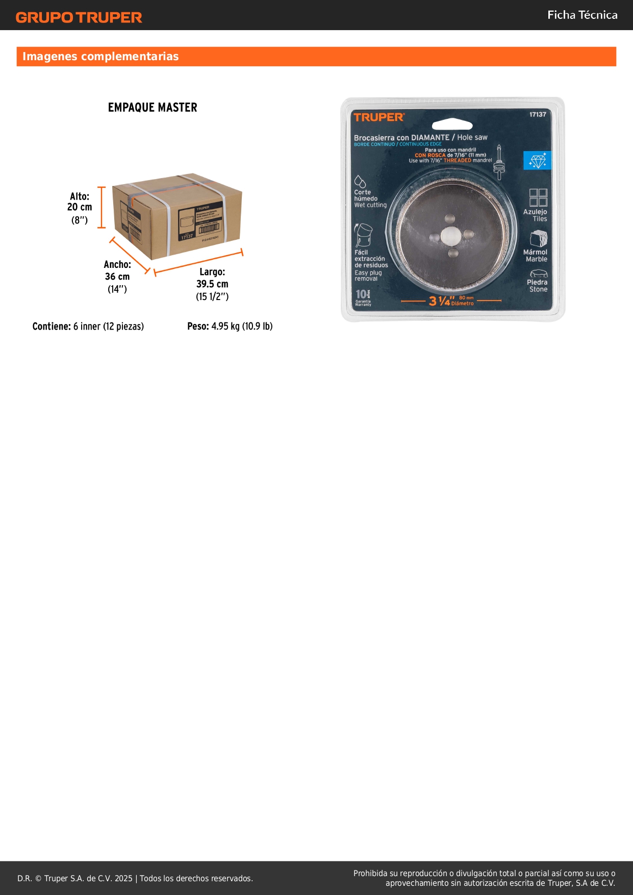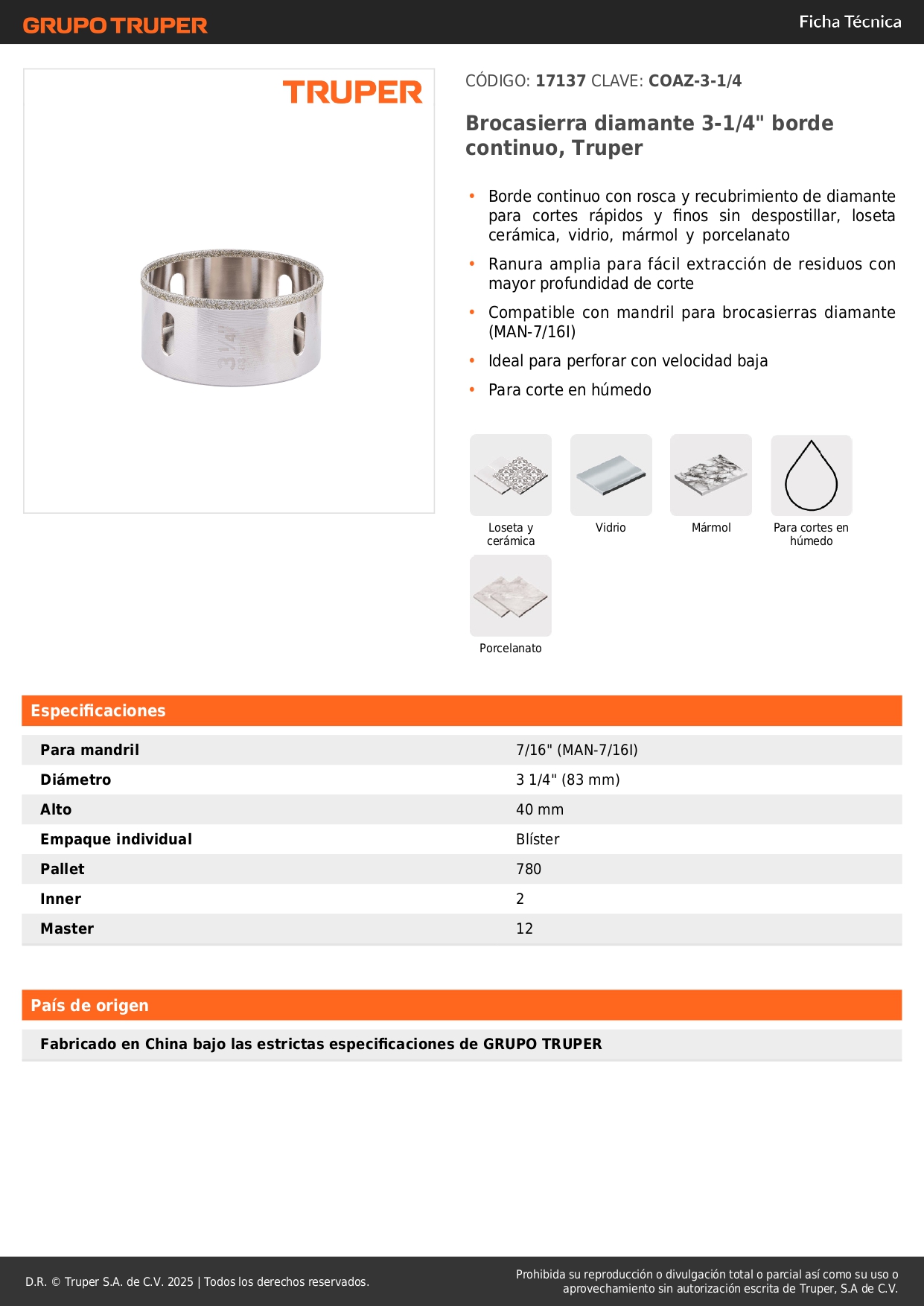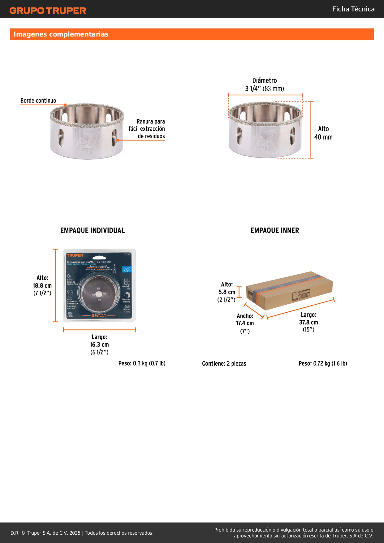 Sierra copa con diamante 3-1/4´´ borde continuo, truper