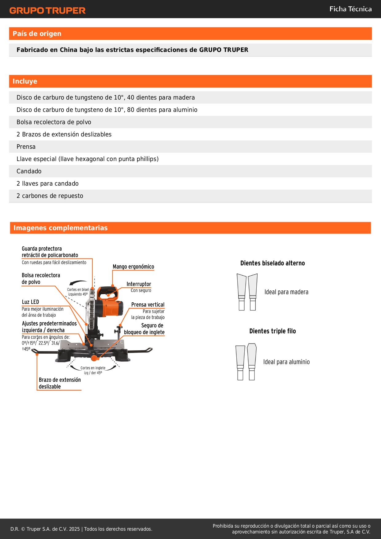 -Incluye 2 disco sierras (madera y aluminio)