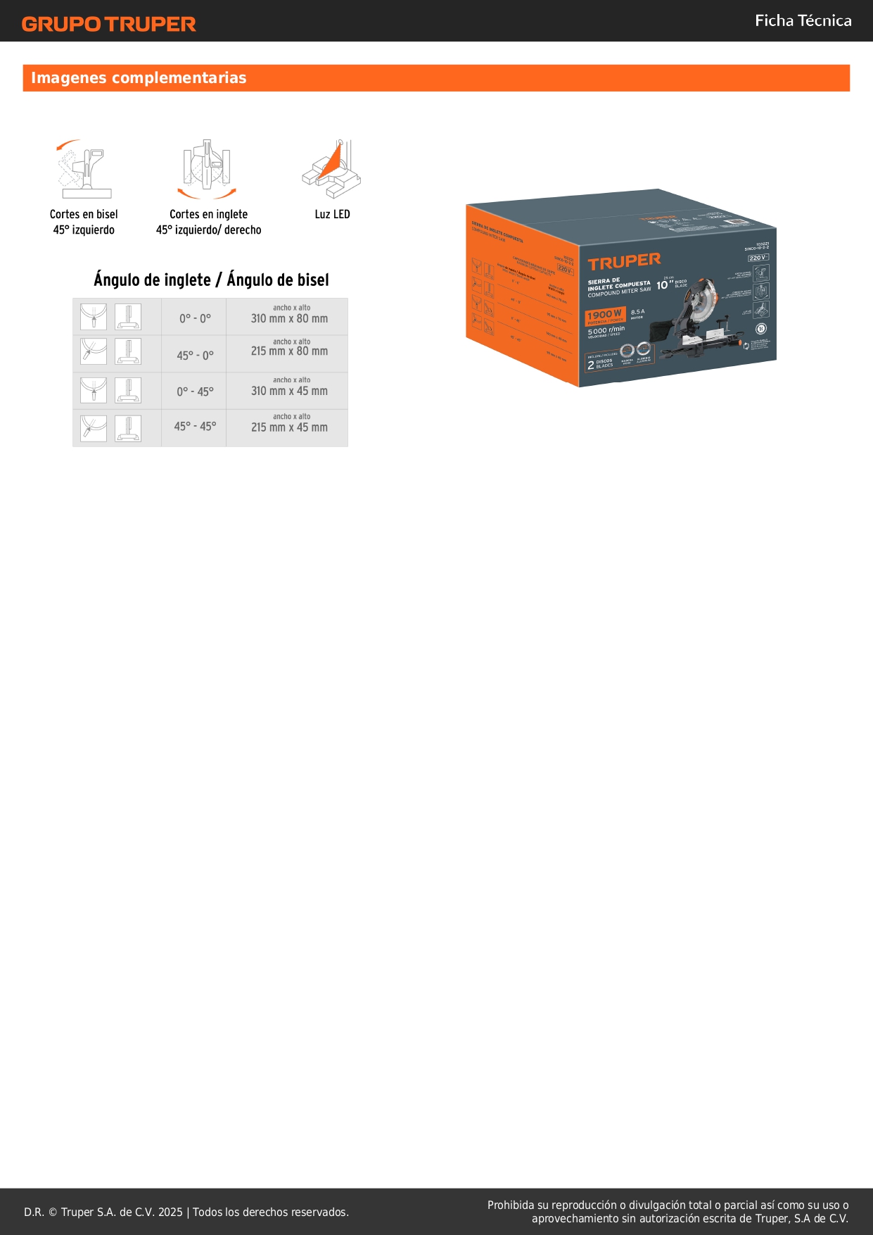 -Cortes en bisel hasta 45° (izquierdo)