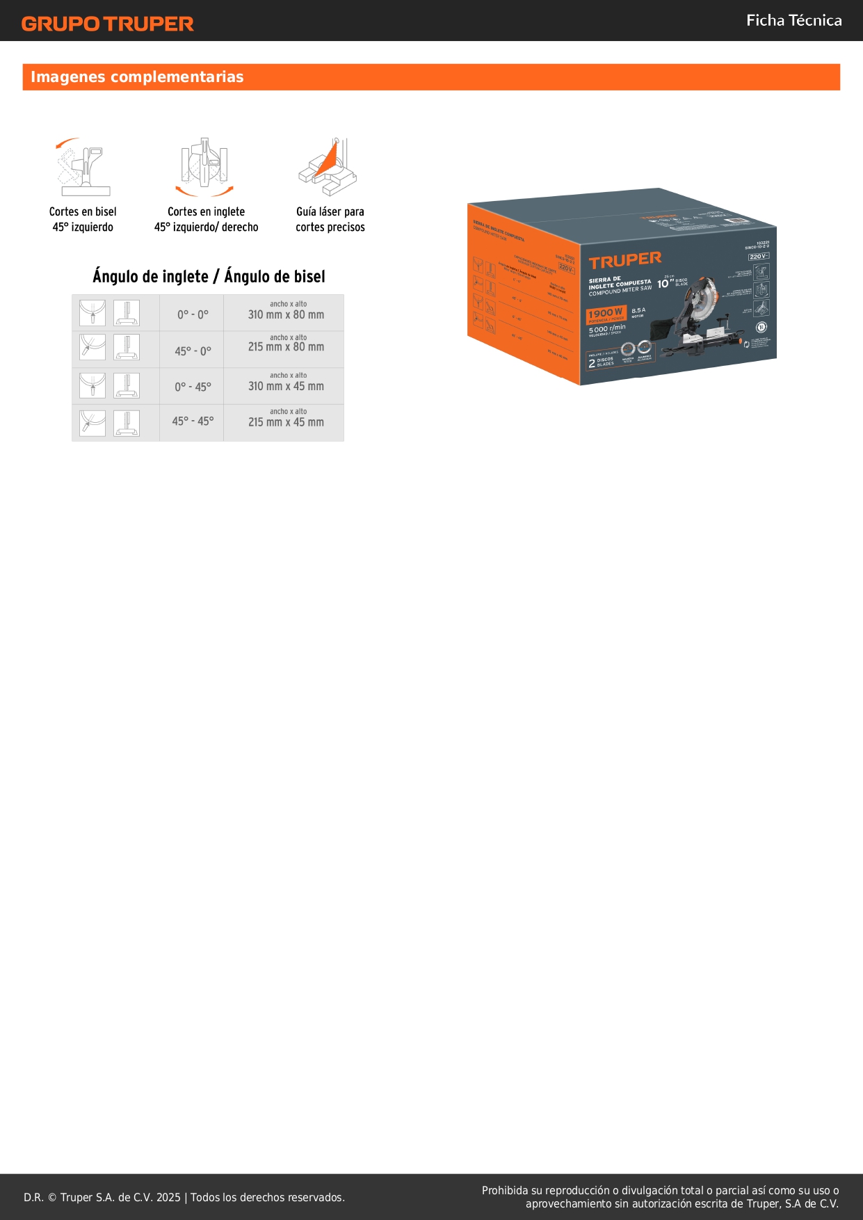 Corte en inglete 0° a 45° Izquierda / Derecha
