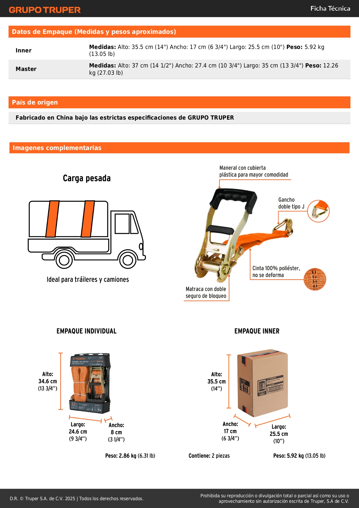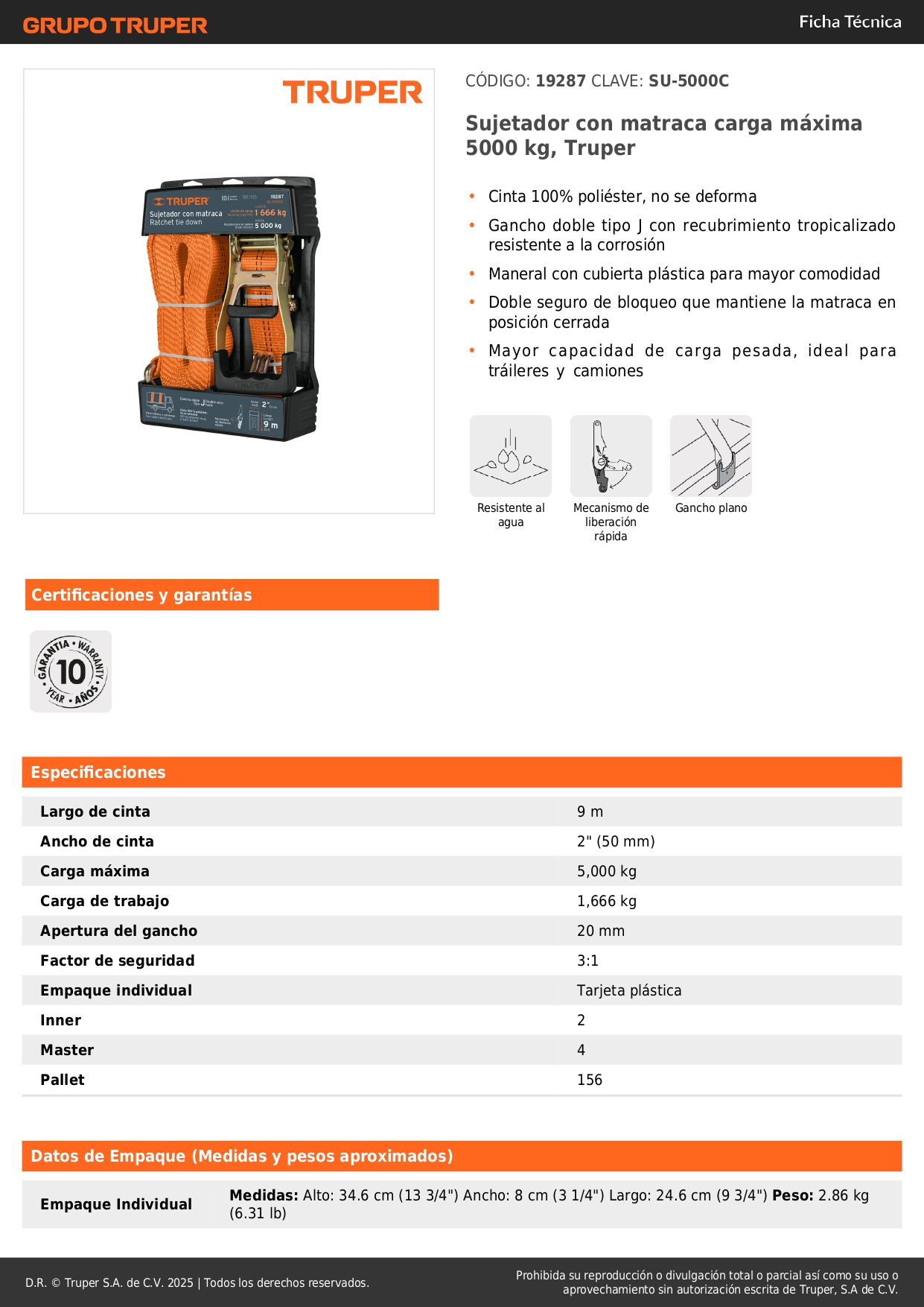 Sujetador con matraca carga máxima 5000 kg, Truper