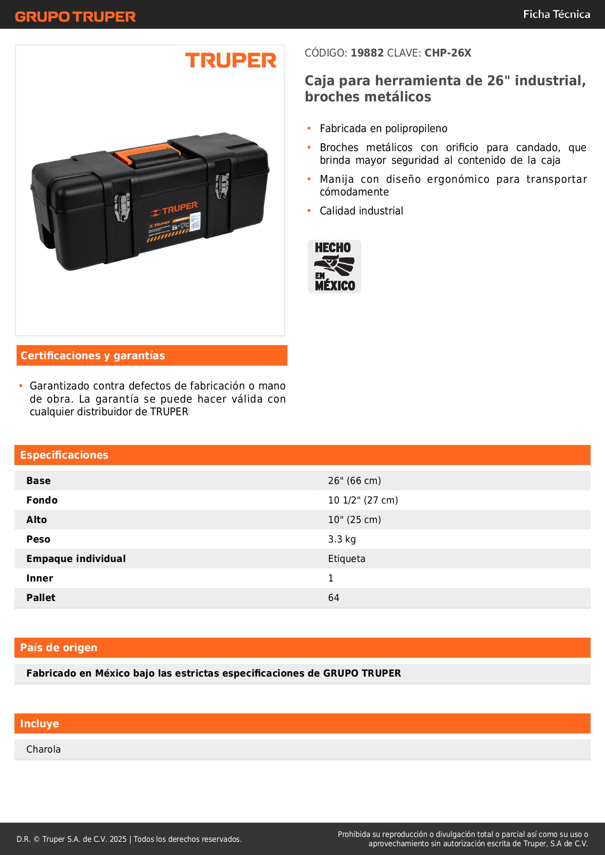 • Broche metálico con orificio para candado, que brinda mayor seguridad al contenido de la caja
