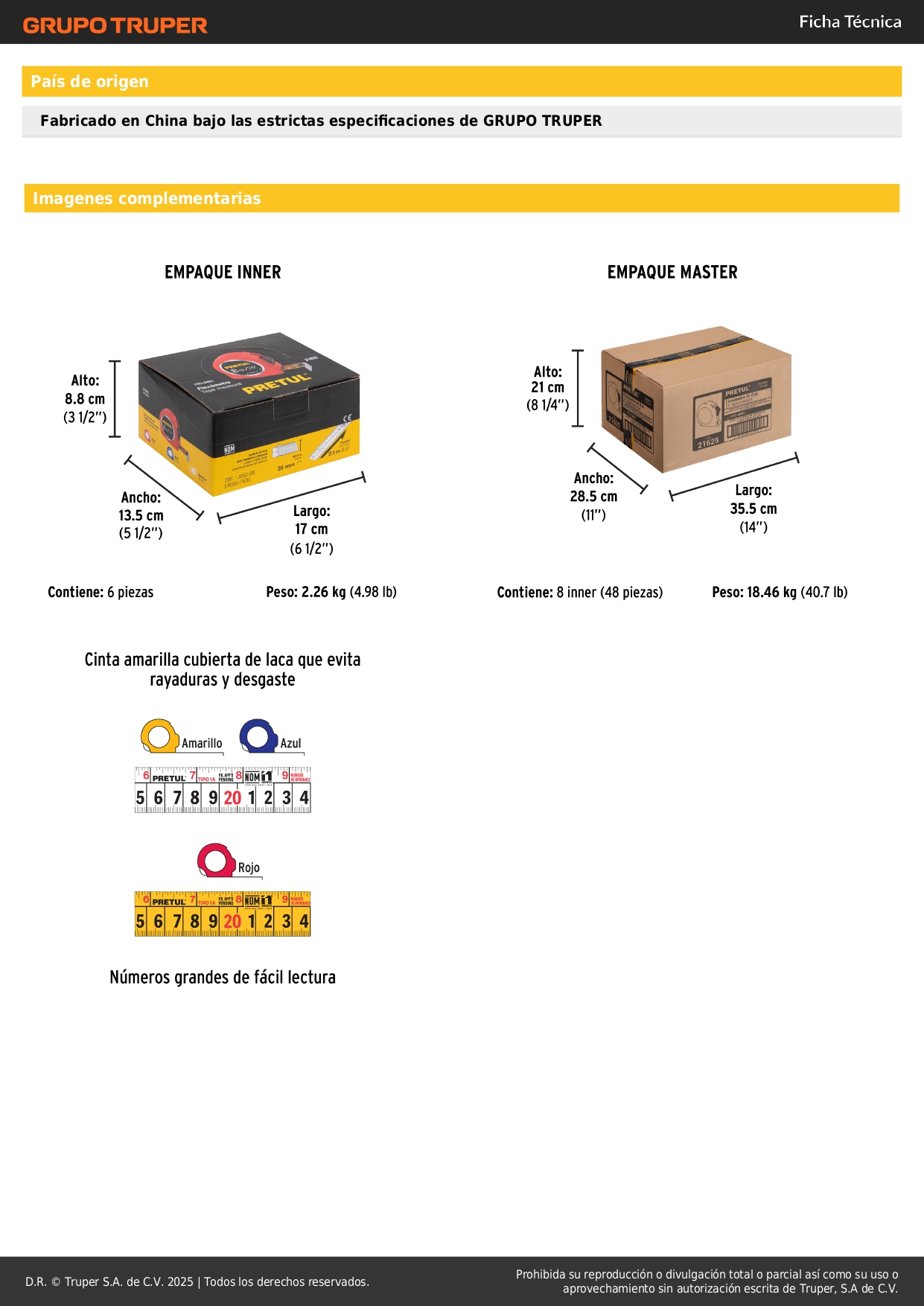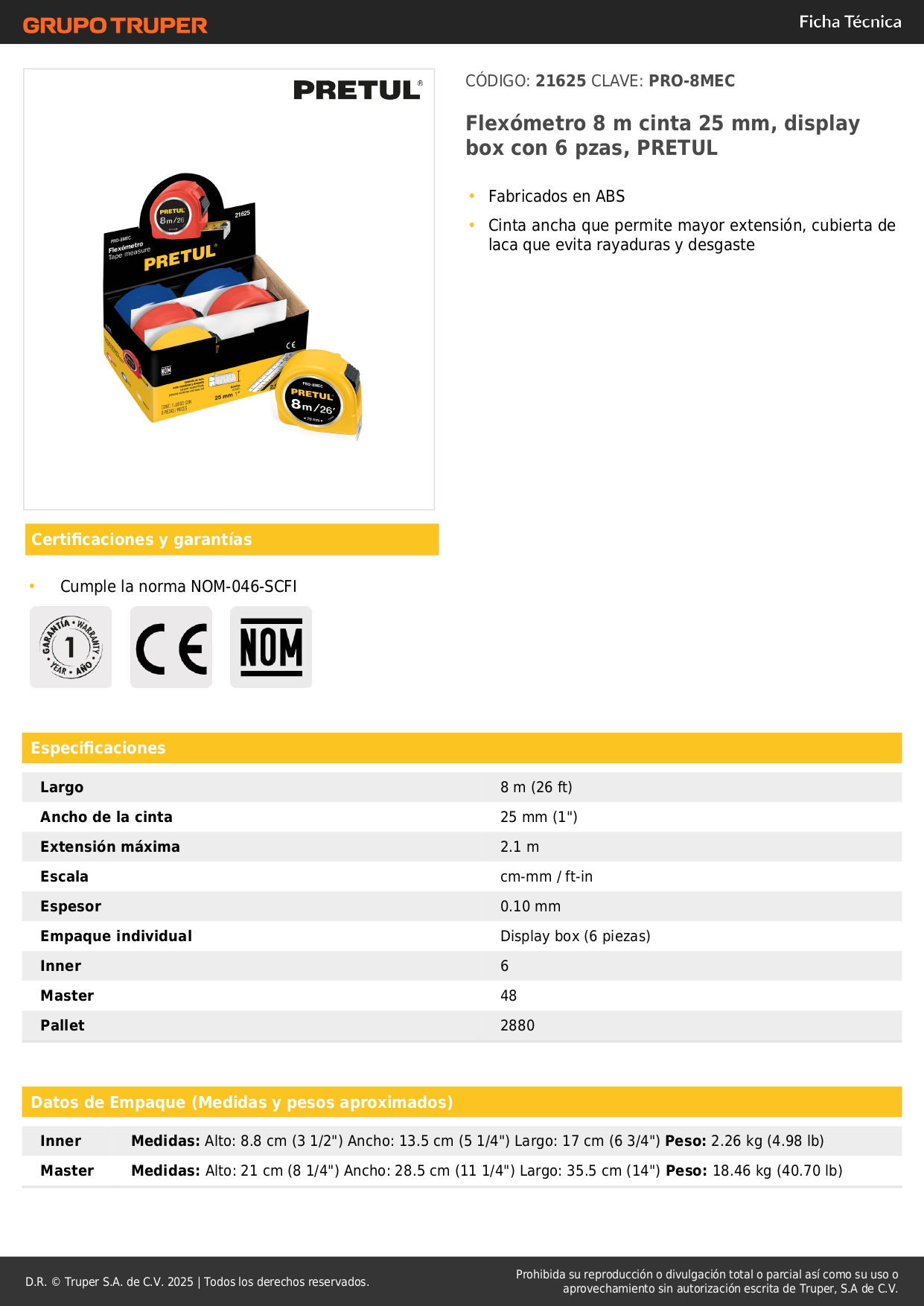 Wincha 8 m cinta 25 mm, a granel por unidad, pretul