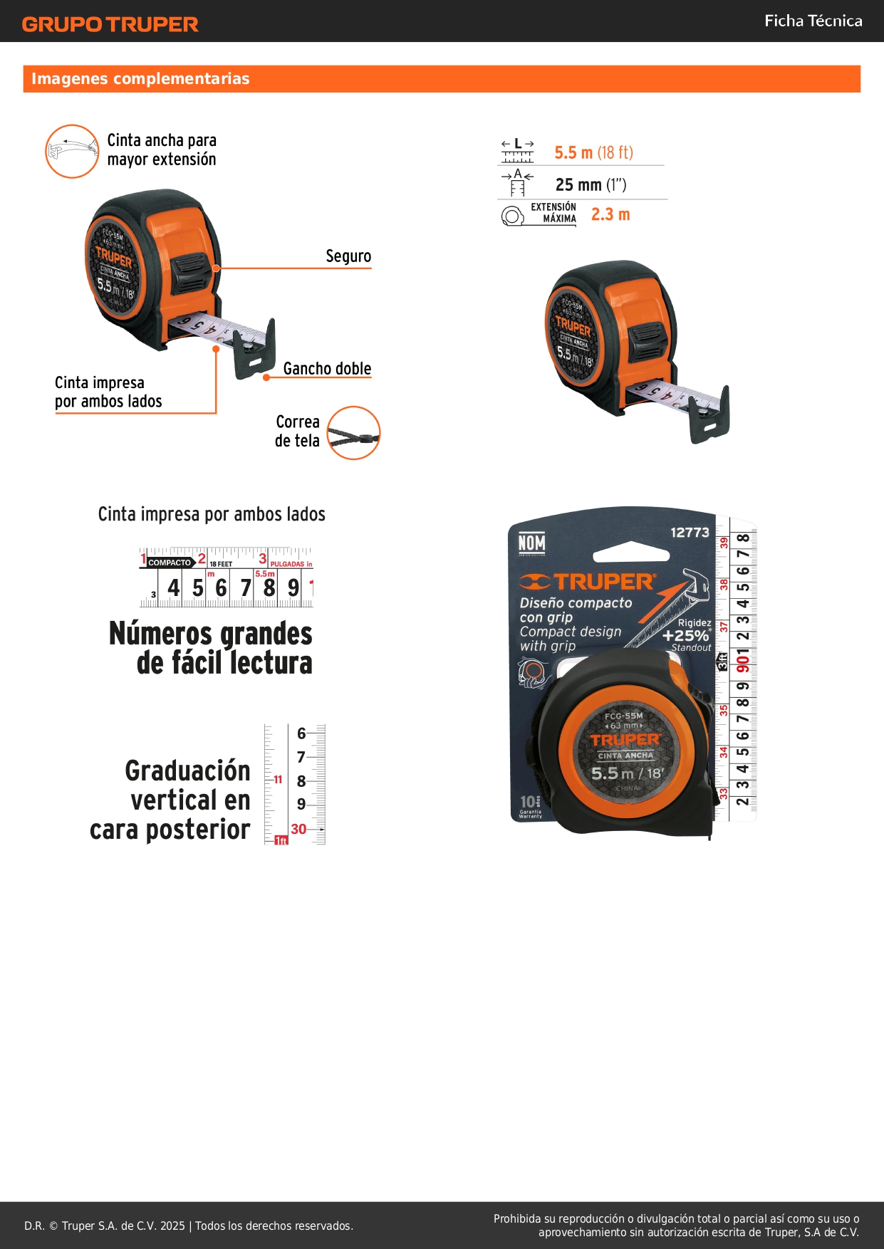 Wincha compacta contra impactos 5.5 m cinta 25 mm, truper